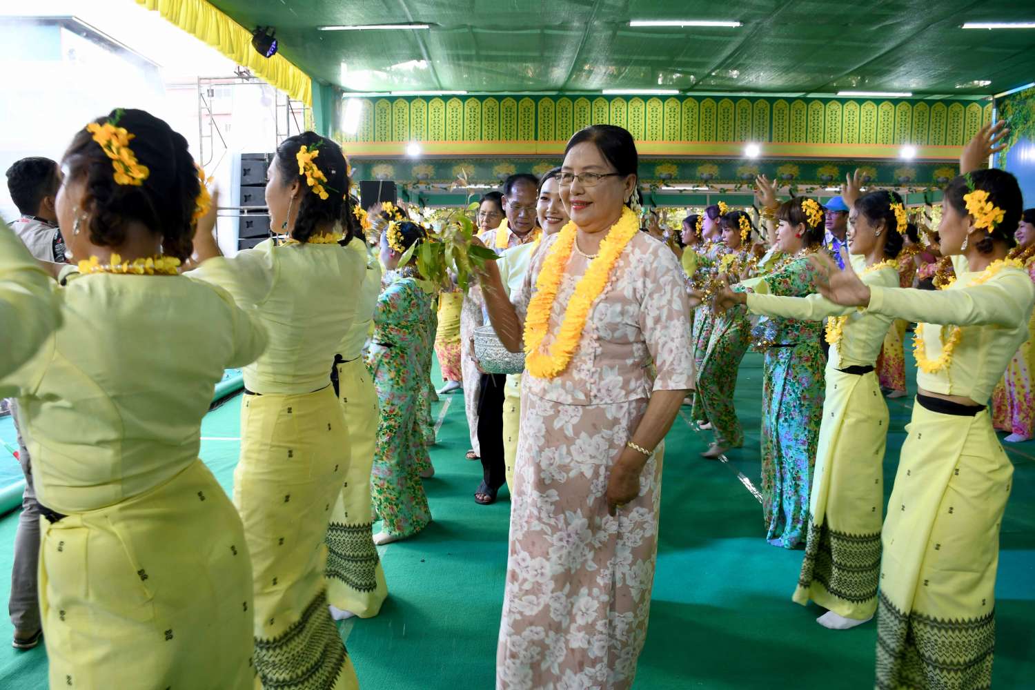 ရခိုင်ပြည်နယ်အစိုးရအဖွဲ့က ကြီးမှူးကျင်းပသော ၁၃၈၃ ခုနှစ်၊ မဟာသင်္ကြန်ပွဲတော် ဗဟိုမဏ္ဍပ်ဖွင့်ပွဲကို ယနေ့ညနေပိုင်းက စစ်တွေမြို့၊ ဦးဥတ္တမပန်းခြံရှေ့ ဗဟိုမဏ္ဍပ်၌ကျင်းပရာ နိုင်ငံတော်စီမံအုပ်ချုပ်ရေး ကောင်စီအဖွဲ့ဝင် ဒေါ်အေးနုစိန်၊ ရခိုင်ပြည်နယ်ဝန်ကြီးချုပ် ဒေါက်တာ အောင်ကျော်မင်း၊ အနောက်ပိုင်း တိုင်းစစ်ဌာနချုပ် တိုင်းမှူးဗိုလ်ချုပ်ထင်လတ်ဦး၊ ပြည်နယ်တရားလွှတ်တော် တရား သူကြီးချုပ် ဒေါ်ဝါဝါထွန်း၊ ပြည်နယ်ဝန်ကြီးများ၊ စစ်တွေတပ်နယ်မှ တပ်မတော်အရာရှိကြီးများ၊ ဌာနဆိုင်ရာတာဝန်ရှိသူများ၊ ယိမ်းအကအဖွဲ့များနှင့် ဒေသခံပြည်သူများတက်ရောက်ကြသည်။