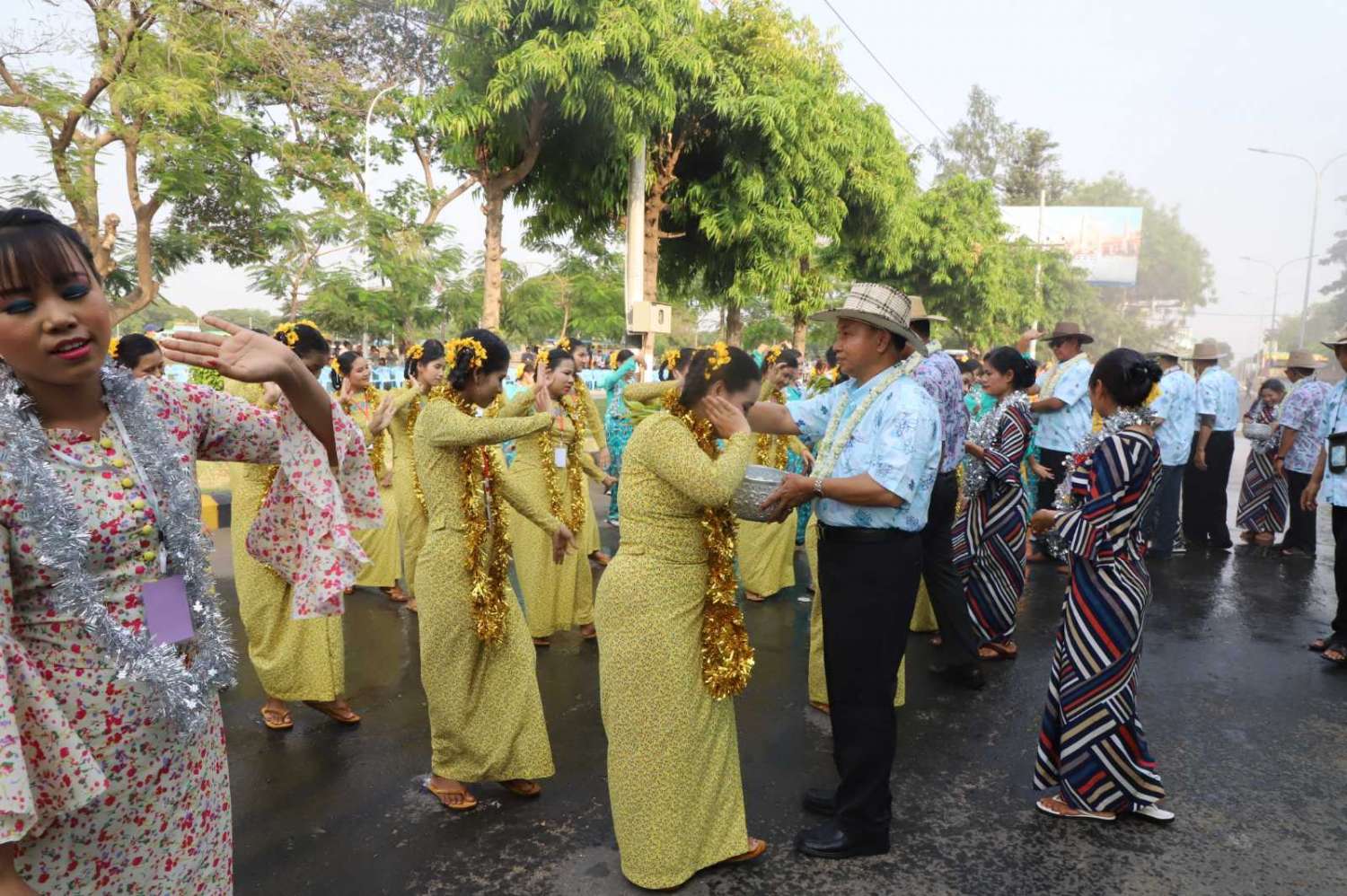 ဆက်လက်၍ တိုင်းဒေသကြီး ဝန်ကြီးချုပ် ဦးမြတ်ကျော်၊ တာဝန်ရှိသူများနှင့် ဧည့်သည်တော်များက ယိမ်းအလှပျိုဖြူများနှင့် တက်ရောက်လာသူများအား နှစ်သစ်ကူးအမွှေးနံ့သာရေဖြင့် အပြန်အလှန် ပတ်ဖျန်းကြပြီး ယိမ်းအလှပျိုဖြူများက အလှည့်ကျဖျော်ဖြေနေမှုများအား ကြည့်ရှူအားပေးခဲ့ကြောင်း သိရသည်။