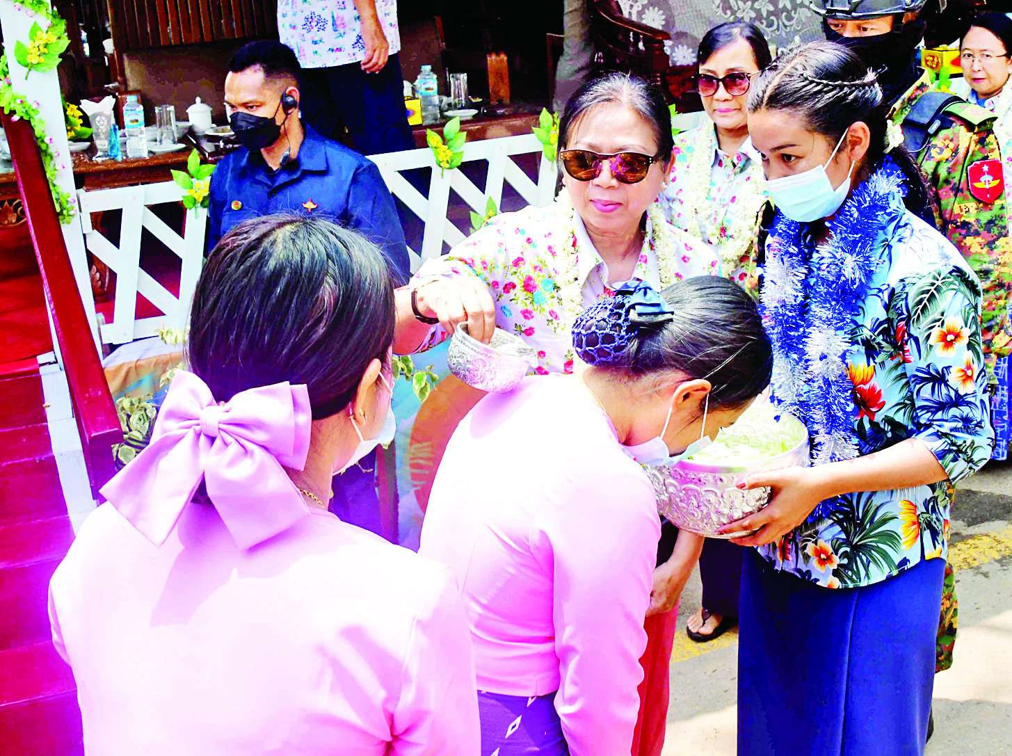 နိုင်ငံတော်စီမံအုပ်ချုပ်ရေးကောင်စီဥက္ကဋ္ဌ တပ်မတော်ကာကွယ်ရေးဦးစီးချုပ်၊ ဇနီးနှင့် အဖွဲ့ဝင်များသည် မိသားစုရေသဘင်မဏ္ဍပ်များ၌ သီဆိုကပြဖျော်ဖြေခဲ့ကြသည့် ယိမ်းအဖွဲ့များနှင့် အရာရှိ၊ စစ်သည် မိသားစုများအား ဂုဏ်ပြုဆုငွေများ‌ ပေးအပ်ချီးမြှင့်ခဲ့ကြောင်းနှင့် အတာရေသဘင်ပွဲတော်ကို အရာရှိ၊ စစ်သည်၊ မိသားစုများနှင့်အတူ ပျော်ရွှင်စွာဆင်နွှဲခဲ့ကြောင်း သိရသည်။