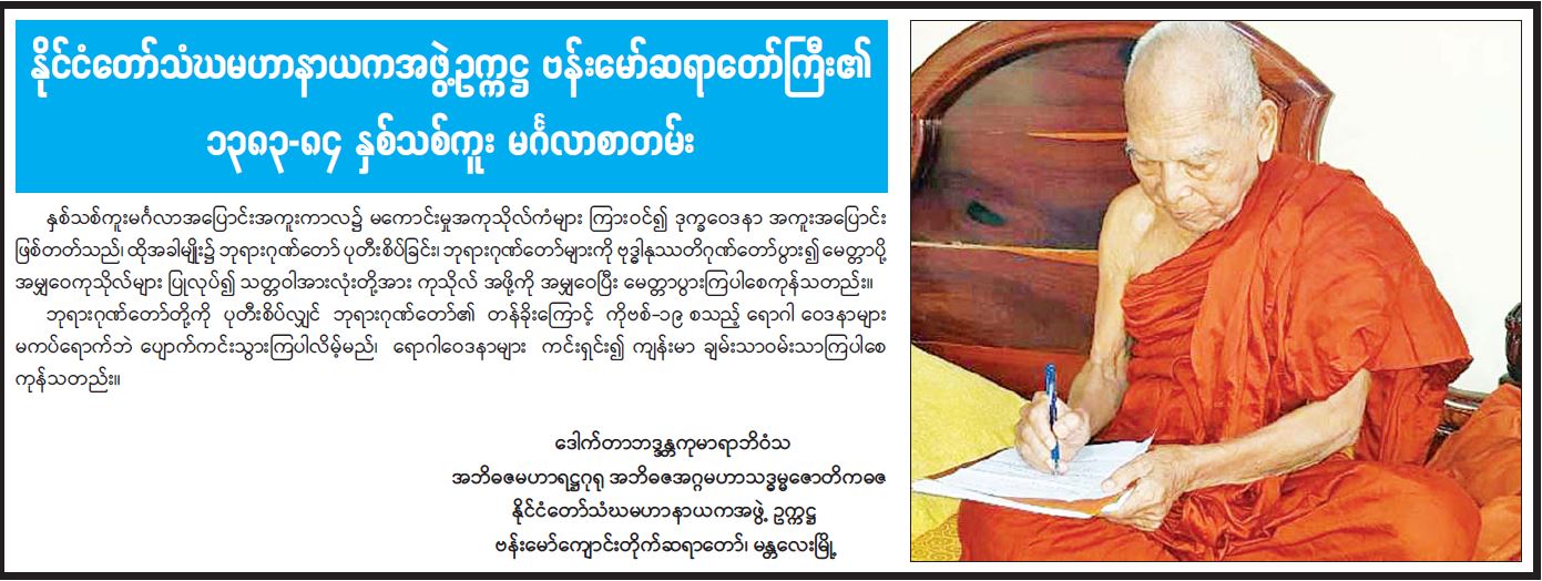 နိုင်ငံတော်သံဃမဟာနာယကအဖွဲ့ဥက္ကဋ္ဌ ဗန်းမော်ဆရာတော်ကြီး၏ ၁၃၈၃-၈၄ နှစ်သစ်ကူး မင်္ဂလာ စာတမ်း