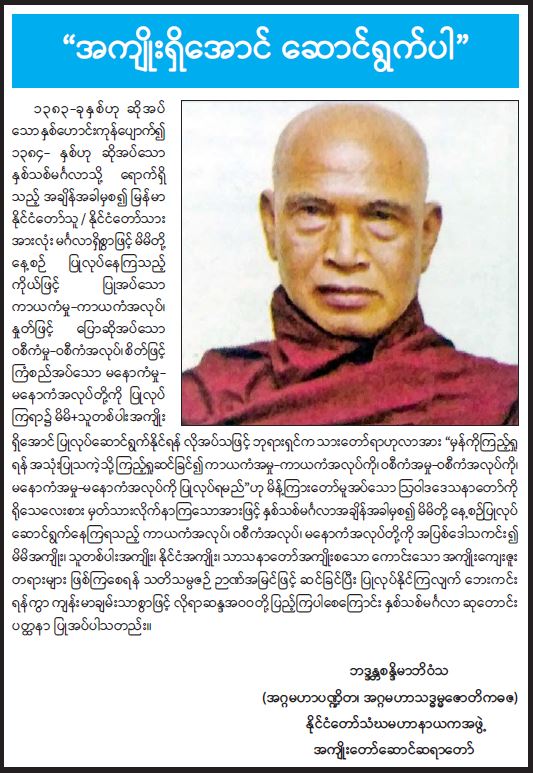 ရွှေကောင်းမှုတော်စေတီ ထုံးသင်္ကန်းဆက်ကပ်ပူဇော်လှူဒါန်းပွဲ၊ ဗုဒ္ဓဘိသေကအနေကဇာတင်လှူပွဲနှင့် ရွှေဘုန်းမြင့်စေတီတော် စိန်ဖူးတော်၊ ငှက်မြတ်နားတော်တင်လှူပူဇော်ပွဲ ပြုလုပ်