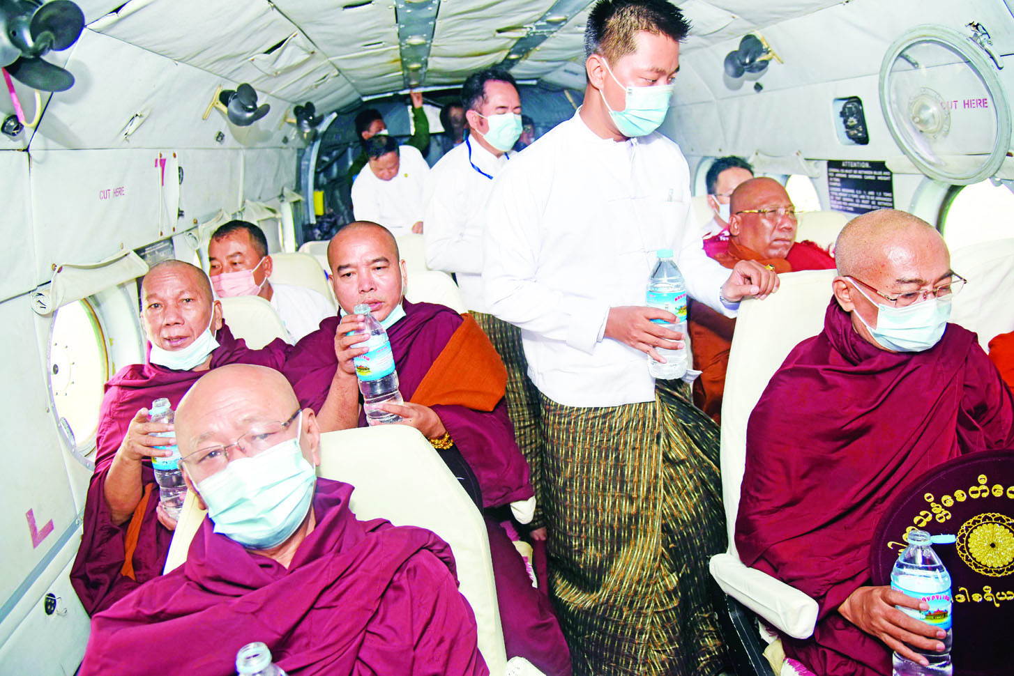 ယင်းနောက် ဥပ္ပါတသန္တိစေတီတော်မြတ်ကြီး ဂေါပကအဖွဲ့၏ သြဝါဒါစရိယ နေပြည်တော် လယ်ဝေးမြို့ပေါက်မြိုင်ကျောင်းတိုက် ပဓာနနာယက အဘိဓဇ မဟာရဋ္ဌဂုရု ဘဒ္ဒန္တဇနိန္ဒ မဟာ ထေရ်မြတ်ကြီး အမှူးပြုသော ဆရာတော်၊ သံဃာ တော်များက ကမ္ဘာသူ ကမ္ဘာသားများနှင့် မြန်မာနိုင်ငံ သူ နိုင်ငံသားများ ကျန်းမာချမ်းသာ၍ ဘေးအန္တရာယ် ကင်းရှင်းစေရန် နေပြည်တော်ကောင်စီနယ်မြေ အတွင်း ရဟတ်ယာဉ်ဖြင့် လှည့်လည်၍ နှစ်သစ်ဦး မင်္ဂလာအန္တရာယ်ကင်း ပရိတ်တရားတော်များကို ရွတ်ဖတ်သရဇ္ဈာယ်တော်မူကြပြီး ပရိတ်ရေများ ဖျန်းပက်ကာ မေတ္တာပို့သကြသည်။