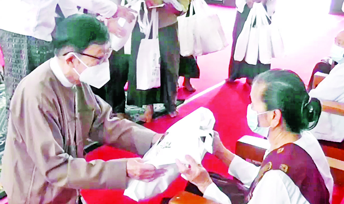 ဆက်လက်၍ မြို့တော်ခန်းမ၌ သက်ကြီးပူဇော်ပွဲ ကို ကျင်းပရာ နိုင်ငံတော်စီမံအုပ်ချုပ်ရေးကောင်စီ အဖွဲ့ဝင် ဦးစိုင်းလုံးဆိုင်၊ တြိဂံဒေသတိုင်းစစ်ဌာနချုပ် တိုင်းမှူး ဗိုလ်ချုပ် မျိုးမင်းထွန်းနှင့်ဇနီး၊ ရှမ်းပြည်နယ် အစိုးရအဖွဲ့ အုပ်ချုပ်ရေးအဖွဲ့ခွဲ (ရှမ်းအရှေ့)ဥက္ကဋ္ဌ ဦးရဲနိုင်နှင့်ဇနီး၊ ဌာနဆိုင်ရာ များက ကျိုင်းတုံမြို့မှ အသက်(၇၅)နှစ်အထက် အဘိုး ၂၀ နှင့် အဘွား ၂၇ ဦးတို့ကို တစ်ဦးလျှင် ပစ္စည်းတန်ဖိုး ငွေကျပ် တစ်သောင်းနှင့် ငွေကျပ် သုံးသောင်းစီပူဇော်ကန်တော့ကြပြီး အခမ်းအနားသို့ တက်ရောက် လာသူများကလည်း ဘိုးဘွားတစ်ဦးချင်းစီကို ငွေသားများ ထောက်ပံ့လှူဒါန်းကြသည်။