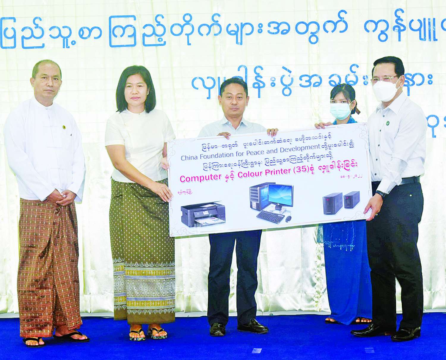 ထို့နောက် ပြည်ထောင်စု ဝန်ကြီးထံ မြန်မာ - တရုတ် ပူးပေါင်းကူညီဆက်ဆံရေး ဗဟိုအသင်းမှ ဂုဏ်ထူးဆောင်ဥက္ကဋ္ဌ ဦးသစ္စာနှင့် တာဝန်ရှိသူများက ပြည်သူ့စာကြည့်တိုက်များအတွက် ကွန်ပျူတာနှင့် ကာလာပရင်တာ ၃၅ စုံကို ပေးအပ် လှူဒါန်းပြီး ပြည်ထောင်စုဝန်ကြီးက ဂုဏ်ပြုမှတ်တမ်းလွှာများ ပြန်လည်ပေးအပ်သည်။