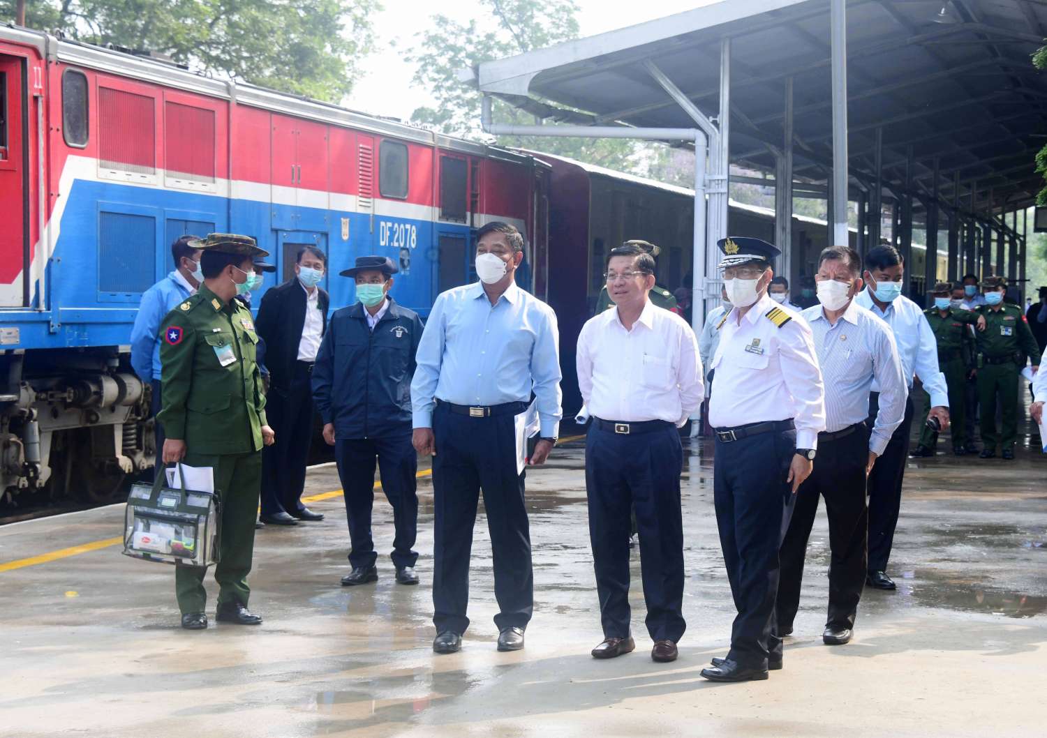 နိုင်ငံတော်စီမံအုပ်ချုပ်ရေးကောင်စီဥက္ကဋ္ဌ နိုင်ငံတော်ဝန်ကြီးချုပ် ဗိုလ်ချုပ်မှူးကြီး မင်းအောင်လှိုင်သည် ကောင်စီတွဲဖက်အတွင်းရေးမှူး ဒုတိယဗိုလ်ချုပ်ကြီး ရဲဝင်းဦး ပြည်ထောင်စုဝန်ကြီးများဖြစ်ကြသည့် ဦးတင်ထွဋ်ဦး၊ ဦးခင်မောင်ရီ၊ မန္တလေးတိုင်းဒေသကြီး ဝန်ကြီးချုပ် ဦးမောင်ကို၊ ညှိနှိုင်းကွပ်ကဲရေးမှူး(ကြည်း၊ ရေ၊ လေ) ဗိုလ်ချုပ်ကြီး မောင်မောင်အေး၊ ကာကွယ်ရေးဦးစီးချုပ်ရုံးမှ တပ်မတော်အရာရှိကြီးများ၊ အလယ်ပိုင်းတိုင်းစစ်ဌာနချုပ် တိုင်းမှူး ဗိုလ်ချုပ် ကိုကိုဦးနှင့် တာဝန်ရှိသူများလိုက်ပါ၍ ယနေ့နံနက်ပိုင်းတွင် ပြင်ဦးလွင်မြို့ ဘူတာကြီးသို့ သွားရောက်ကြည့်ရှု စစ်ဆေးသည်။