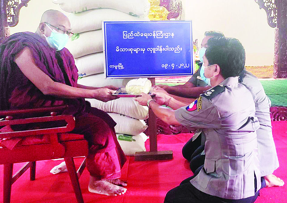 ပြည်ထဲရေးဝန်ကြီးဌာန တပ်ဖွဲ့ ဝင်/ဝန်ထမ်း၊ အရာထမ်း၊ အမှုထမ်း မိသားစုများက မြို့နယ်အသီးသီးရှိ ဘုန်းတော်ကြီးကျောင်းများသို့ ဆွမ်းဆန်တော်များ ဆက်ကပ်လှူဒါန်းလျက်ရှိသည်။