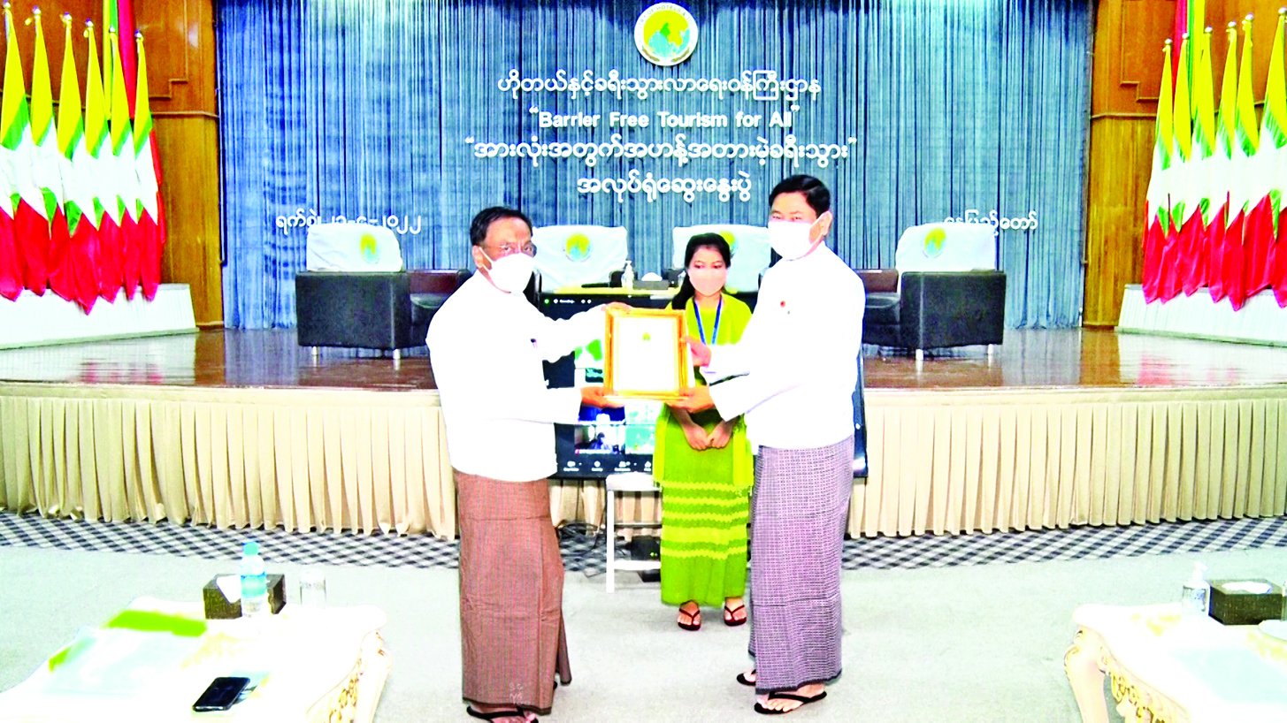 ယနေ့အလုပ်ရုံဆွေးနွေးပွဲက ဆက်စပ်ဝန်ကြီးဌာနများနှင့် အသင်းအဖွဲ့များ၊ ခရီးသွားလုပ်ငန်းနယ်ပယ်မှ ကျွမ်းကျင်ပညာရှင်များနှင့် ဆရာ ဆရာမများ ပါဝင်၍ လက်တွေ့ကျကျ တွင်တွင်ကျယ်ကျယ် အကောင်အထည်ဖော်နိုင်ရေးအတွက် ကျင်းပရခြင်းဖြစ်ကြောင်း၊ ကနဦးအစီအစဉ်အဖြစ် ဟိုတယ်/ အဆောက်အအုံများတွင် မသန်စွမ်း ခရီးသွားဧည့်သည်များကို ဝန်ဆောင်မှုပေးအပ်နိုင်ရေးအတွက် စီစဉ်ဆောင်ရွက်လျက်ရှိကြောင်း၊ ခရီးစဉ်နေရာများတွင်လည်း ဗိသုကာဆိုင်ရာ အတားအဆီးများ ဖြေလျှော့နိုင်ရန်အတွက် အစီအမံများထည့်သွင်းပြင်ဆင် ဆောင်ရွက်သွားရန်လိုအပ်ကြောင်း၊ ထိုသို့ပြင်ဆင်ကြရာတွင်လည်း ယခုဖြစ်ပေါ်နေသော ကိုဗစ်-၁၉ ကပ်ရောဂါ ကာကွယ်ရေး ကျန်းမာရေးဆိုင်ရာနှင့် ခရီးသွားကန့်သတ်ချက် အတားအဆီးများကိုလည်း သတိမူထည့်သွင်း စဉ်းစားကြရမည်ဖြစ်ကြောင်း၊ ကမ္ဘာ့ခရီးသွားလုပ်ငန်း အဖွဲ့ချုပ်အနေဖြင့် လွယ်ကူချောမွေ့စွာ သွားလာနိုင်သော ခရီးသွားလုပ်ငန်း (Accessible Tourism) တွင် လုပ်ဆောင်သင့်သော အချက်များ ရေးဆွဲထုတ်ပြန်ထားရှိသကဲ့သို့ နိုင်ငံတော်အစိုးရနှင့် ဝန်ကြီးဌာနတို့ကလည်း မသန်စွမ်းခရီးသွားများအတွက် ဆောင်ရွက်သင့်သော အချက်များပါဝင်သည့် အစီအစဉ်များ ချမှတ်ရေးဆွဲထားပါကြောင်း၊ ထို့ကြောင့် ခရီးစဉ်ဒေသများသို့ ခရီးသွားလာရန်ခက်ခဲသူများ အဟန့်အတားမဲ့ လွယ်ကူစွာသွားလာ လည်ပတ်နိုင်ရေးအတွက် Barrier Free Tourism Pilot Project ကို ဆောင်ရွက်ရန်အတွက် ဝန်ကြီးဌာနတစ်ခုတည်းသာမက ဆက်စပ်ဌာနများ၊ အသင်းအဖွဲ့များ၊ လုပ်ငန်းရှင်များ၊ ကျွမ်းကျင်ပညာရှင်များ အားလုံးဝိုင်းဝန်းကြိုးပမ်း ဆောင်ရွက်ပေးကြစေလိုကြောင်း ပြောကြားသည်။