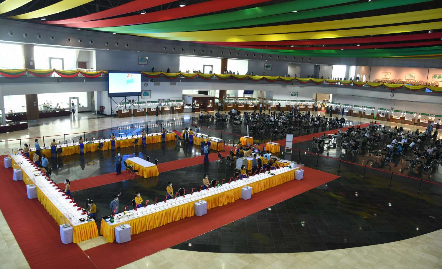 (၅၇)ကြိမ်မြောက် မြန်မာ့ကျောက်မျက်ရတနာပြပွဲပထမနေ့ကို ယနေ့နံနက်ပိုင်းတွင် နေပြည်တော်ရှိ မဏိရတနာကျောက်စိမ်းခန်းမ၌ကျင်းပရာ ပြည်တွင်း၊ ပြည်ပ ရတနာကုန်သည်များဖြင့် စည်ကားလျက်ရှိသည်။