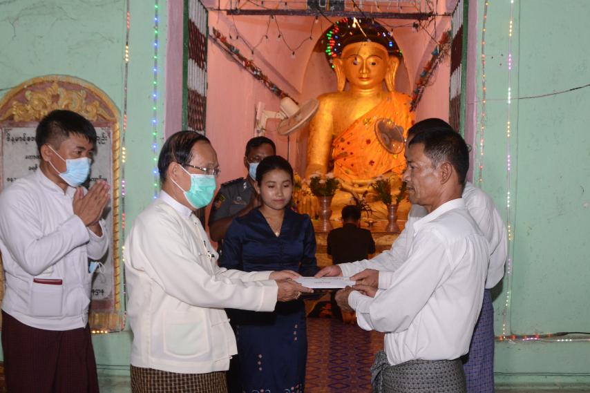 ထို့နောက် မြောက်ဦးမြို့ရှိ မာရ်ငါးပါး ဘုရားတစ်ဆူဖြစ်သော ဇိနမာရ်အောင်ဘုရားသို့ လည့်လည် ဖူးမျှော်ပြီး ဂေါပကအဖွဲ့သို့ ဘက်စုံပြုပြင် မွမ်းမံရန်အတွက် အလှူငွေ ကျပ်ငါးသိန်းကို လည်းကောင်း၊ AD - ၁၅၃၅ ခုနှစ်တွင် ဘုရင်မင်းဗာကြီးတည်ထားခဲ့သည့်သျှစ်သောင်း ပုထိုးတော်ကြီးအား လှည့်လည်ဖူးမြှော်ပြီး ဘက်စုံပြုပြင်မွမ်းမံရန်အတွက် ဂေါပကအဖွဲ့သို့ အလှူငွေ ကျပ်ငါးသိန်းကိုလည်းကောင်း လှူဒါန်းခဲ့ပြီး အာရှပစိဖိတ်ဒေသ မှတ်တမ်းအမွေအနှစ် စာရင်းဝင် အာနန္ဒစန္ဒြကျောက်စာကို လှည့်လည်ကြည့်ရှုခဲ့ပါကြောင်း သိရသည်။