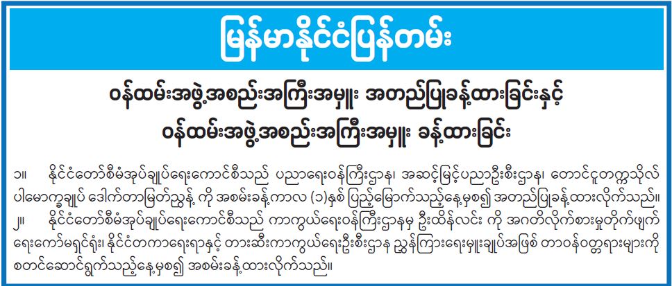 ဝန်ကြီးဌာန ကြေညာချက်များ