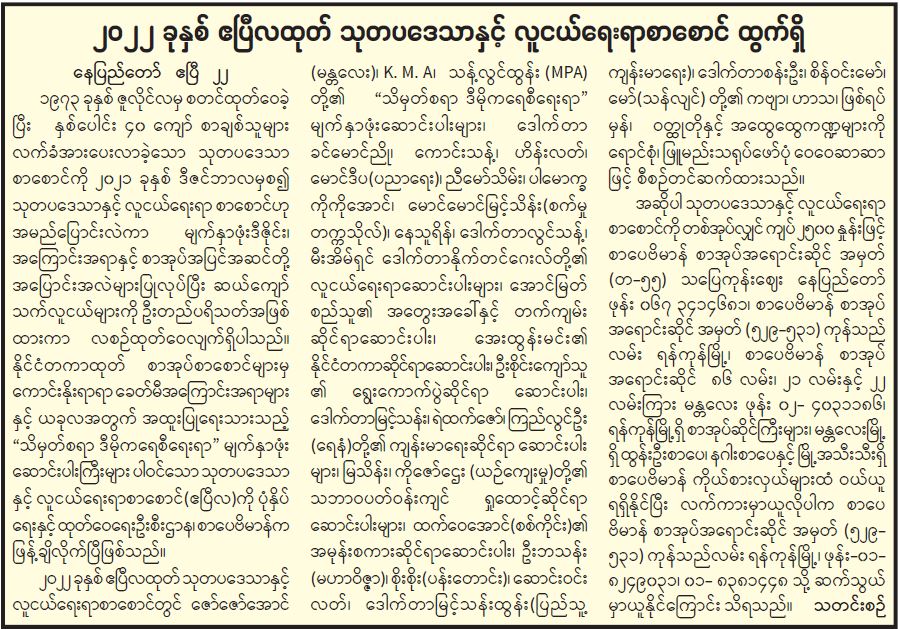 ၂၀၂၂ ခုနှစ် ဧပြီလထုတ် သုတပဒေသာနှင့် လူငယ်ရေးရာစာစောင် ထွက်ရှိ