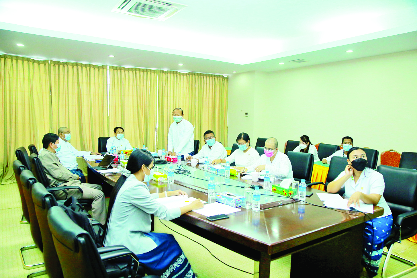 ဆက်လက်၍ ဒုတိယညွှန်ကြားရေးမှူးချုပ် ဦးကျော်ဦးက စစ်တမ်းမေးခွန်းလွှာများ မှန်မှန်ကန်ကန်ရရှိနိုင်စေရေးအတွက် စစ်တမ်းကောက်ယူ မည့် ကိစ္စရပ်များနှင့်ပတ်သက်ပြီး အဖွဲ့များစနစ်တကျ ခွဲ၍ လိုအပ်သည်များကို ကြိုတင်ပြင်ဆင်ဆောင်ရွက် ထားနိုင်ရန်အတွက် ကိုယ်ခန္ဓာကြံ့ခိုင်မှု ညွှန်းကိန်းများကောက်ယူမည့် လုပ်ငန်းစဉ်များနှင့် ပတ်သက်၍ လည်းကောင်း၊ အားကစားဆေးဘက်ဌာနခွဲ ညွှန်ကြားရေးမှူး ဒေါက်တာစိုးမင်းဦးက စစ်တမ်း ကောက်ယူမည့်အဖွဲ့များကို ဗီဒီယိုကွန်ဖရင့်စနစ်ဖြင့် ထပ်မံ၍ သင်တန်းပေးဆောင်ရွက် သွားမည့်ကိစ္စကို လည်းကောင်း ဆွေးနွေးပြောကြားပြီး ညွှန်ကြားရေးမှူးချုပ်က နိဂုံးချုပ်အမှာစကားပြောကြားခဲ့ကြောင်း သိရသည်။