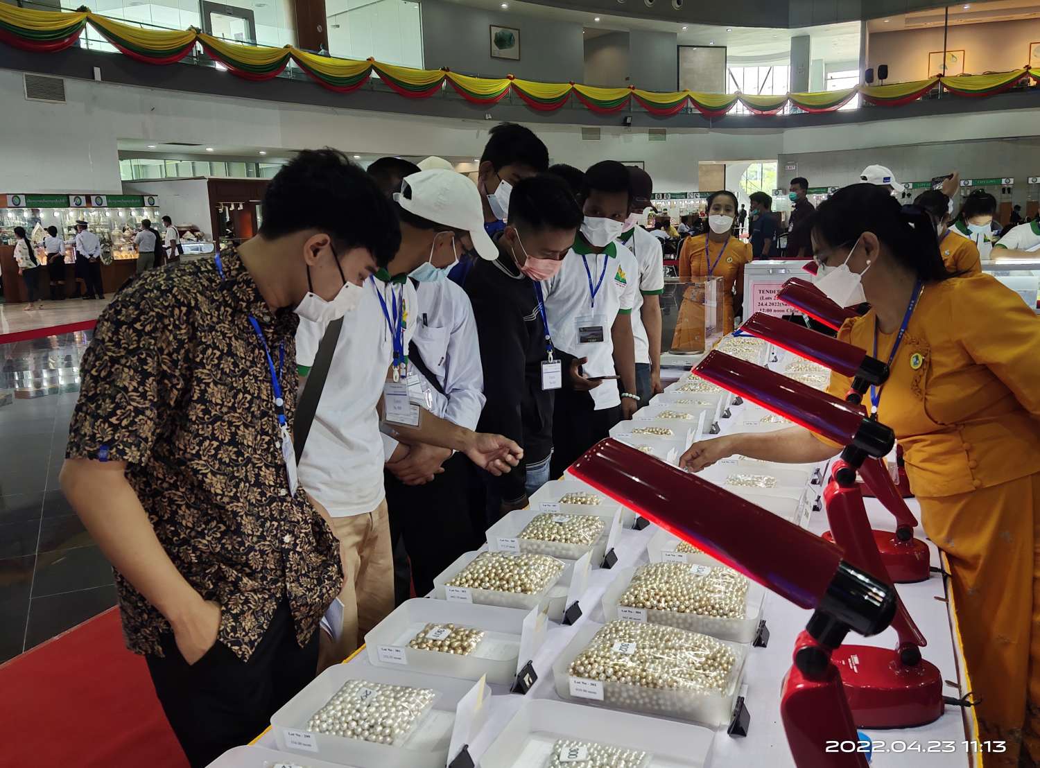 ထို့နောက် ပြည်တွင်း၊ ပြည်ပ ရတနာကုန်သည်များသည် ပြပွဲတွင် ရောင်းချမည့် ပုလဲအတွဲအမှတ် ၁ မှ အတွဲအမှတ် ၂၂၀ ထိ ပုလဲအတွဲများကို ကြည့်ရှုစစ်ဆေးကြပြီး ဈေးနှုန်းတင်သွင်းလွှာများကို တင်ဒါပုံးများ အတွင်းသို့ ထည့်သွင်းကြသည်။
