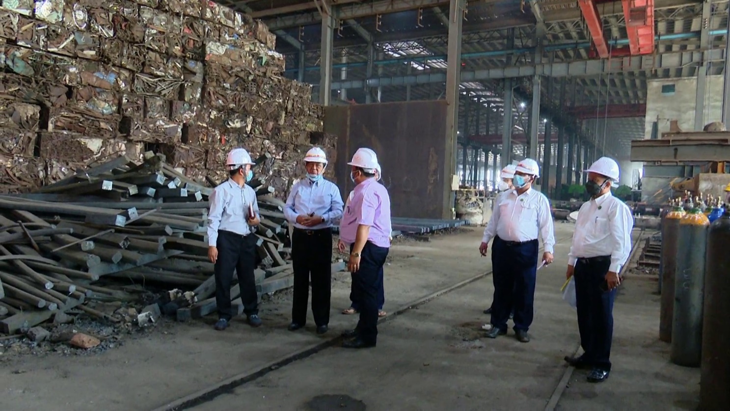 စက်မှုဝန်ကြီးဌာန၊ ပြည်ထောင်စုဝန်ကြီး ဒေါက်တာချာလီသန်းသည် တာဝန်ရှိသူများနှင့်အတူ ယနေ့၊ နံနက်ပိုင်းတွင် ရန်ကုန်တိုင်းဒေသကြီး၊ မှော်ဘီမြို့နယ်၊ မြောင်းတကာ စက်မှုဇုန်ရှိ Yangon Crown သံမဏိစက်ရုံသို့ ရောက်ရှိရာ စက်ရုံမှူးက လုပ်ငန်းလည်ပတ် အကောင်အထည်ဖော် ဆောင်ရွက် နေမှုများကို ရှင်းလင်းတင်ပြသည်။