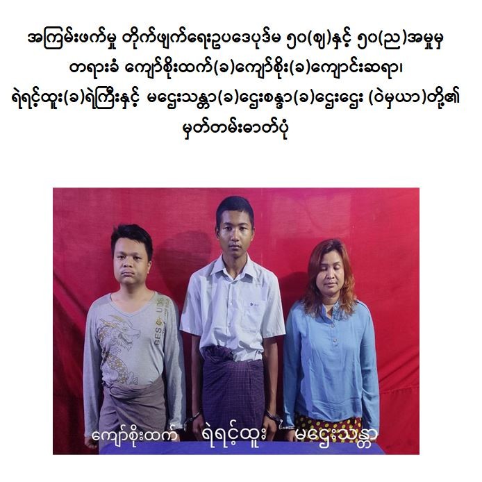 ရန်ကုန်တိုင်းဒေသကြီး၊ လှိုင်သာယာ(အနောက်ပိုင်း)မြို့နယ်နေ ကျော်စိုးထက်(ခ) ကျော်စိုး(ခ) ကျောင်းဆရာ(ဘ)ဦးအောင်အောင်နှင့် ရဲရင့်ထူး(ခ) ရဲကြီး(ဘ) ဦးစန်းထွန်း တို့သည် ၂၀၂၁ ခုနှစ်၊ ဖေဖော်ဝါရီလအတွင်း ဆန္ဒပြမှုများတွင် ပါဝင်ခြင်း၊ တိုင်းရင်းသား လက်နက်ကိုင်အဖွဲ့ နယ်မြေအတွင်း၌ သင်တန်းတက်ရောက်ခဲ့ခြင်း၊ လှိုင်သာယာ(အနောက်ပိုင်း)မြို့နယ်၊ အမှတ်(၉) ရပ်ကွက်အနီးရှိ ရဲကင်းစခန်း အပါအဝင် အများပြည်သူများ သွားလာလျက်ရှိသည့် နေရာများအား လက်လုပ်မိုင်း များဖြင့် ဖောက်ခွဲတိုက်ခိုက်ခဲ့ခြင်းတို့ကြောင့် လည်းကောင်း၊ အဆိုပါရပ်ကွက်နေ ဌေးသန္တာ(ခ) ဌေးစန္ဒာ(ခ)ဌေးဌေး(ဘ)ဦးဘို သည် ၂၀၂၁ ခုနှစ်၊ ဖေဖော်ဝါရီလအတွင်း ဆန္ဒပြမှုများတွင်ပါဝင်ခြင်း၊ လှိုင်သာယာ (အနောက်ပိုင်း)မြို့နယ်အတွင်း အကြမ်းဖက်လုပ်ငန်းများဆောင်ရွက်ရန် ကျော်စိုးထက် (ခ)ကျောင်းဆရာမှ ပေးအပ်သည့် လက်လုပ်မိုင်းများအား လက်ခံသိမ်းဆည်းပေးခြင်းနှင့် အကြမ်းဖက် သင်တန်းတက် ရောက်ရန် ငွေကြေးထောက်ပံ့မှုများကို လုပ်ဆောင်ခဲ့ခြင်းတို့ကြောင့် လည်းကောင်း စစ်အုပ်ချုပ်ရေး(Martial Law) စစ်ခုံရုံးဖွဲ့၍ စစ်ဆေးမှုများဆောင်ရွက်ခဲ့ရာ အကြမ်းဖက်မှုတိုက်ဖျက်ရေး ဥပဒေပုဒ်မ ၅၀(ဈ)နှင့် ၅၀(ည)တို့အရ ၂၀၂၂ ခုနှစ်၊ ဧပြီ ၂၂ ရက်တွင် ၎င်းတို့အား “ထောင်ဒဏ် တစ်သက်” ပြစ်ဒဏ်ကို အသီးသီးအမိန့် ချမှတ်လိုက်ကြောင်း သိရှိရသည်။