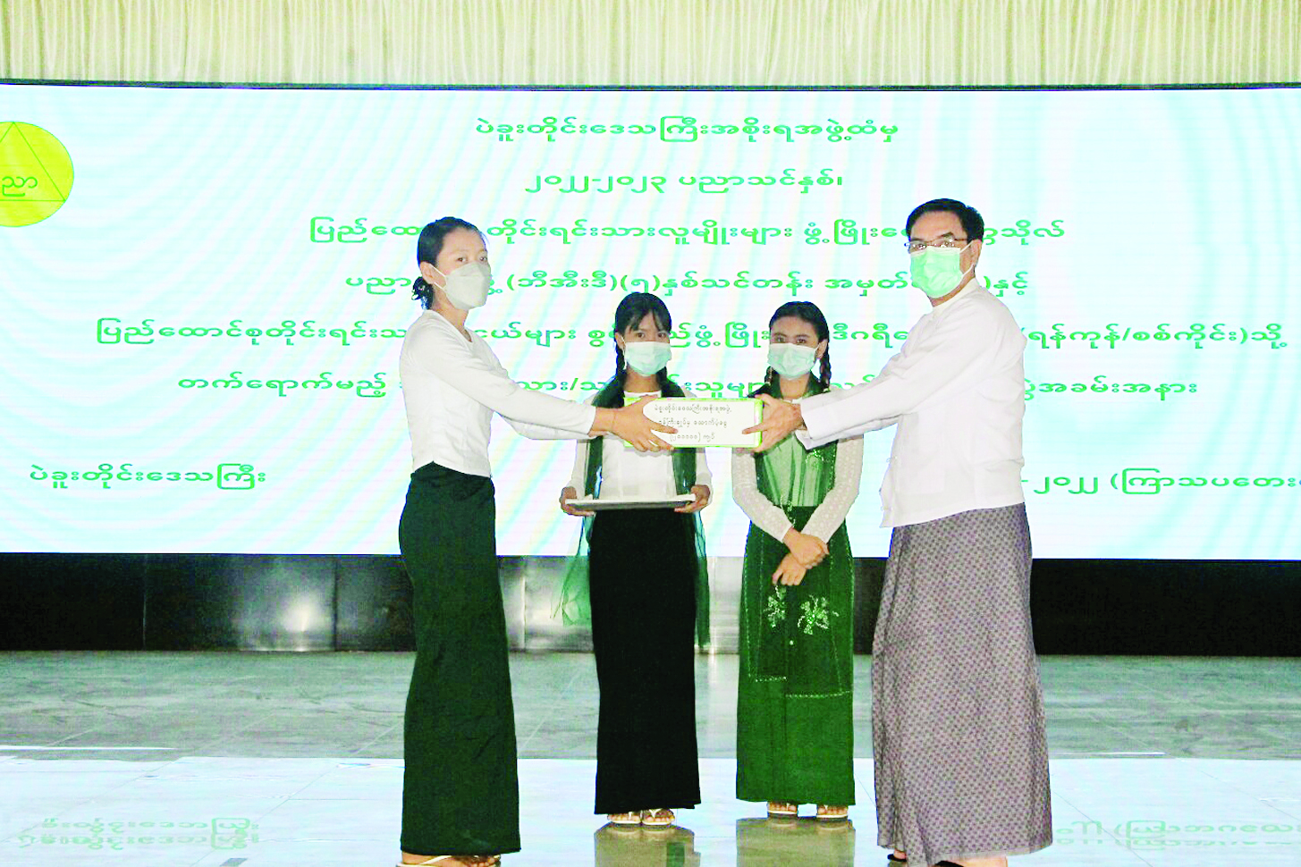 ထို့နောက်တိုင်းဒေသကြီးဝန်ကြီးချုပ်က သင်တန်းသား သင်တန်းသူများအတွက် ထောက်ပံ့ ငွေများ ပေးအပ်သည်။