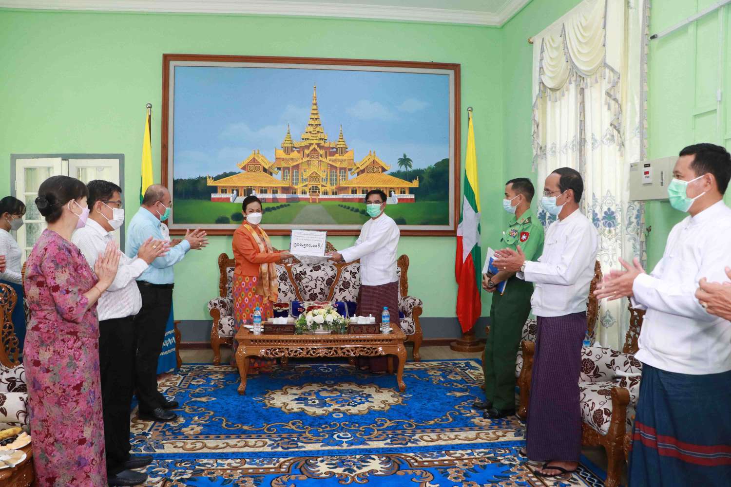 ဆက်လက်၍ ပြည်ထောင်စုဝန်ကြီးဦးဆောင်သော တာဝန်ရှိသူများက ပဲခူးတိုင်းဒေသကြီးအတွင်းရှိ အသက်(၈၅)နှစ်နှင့်အထက် ဘိုးဘွား(၃၀,၃၅၀)အတွက် တစ်ဦးလျှင် နိုင်ငံတော်မှ လူမှုရေးပင်စင် ထောက်ပံ့ငွေကျပ် (၃၀,၀၀၀/-)နှုန်းဖြင့် ငွေကျပ် (၉၁၀,၅၀၀,၀၀၀)၊ ပဲခူးတိုင်းဒေသကြီးအတွင်းရှိ စေတနာ့ဝန်ထမ်း အဖွဲ့အစည်းများမှ တည်ထောင်ထားရှိသော ပရဟိတဂေဟာ/ရိပ်သာများအတွက် ထောက်ပံ့ငွေကျပ် (၈၆,၀၇၉,၀၀၀)၊ စုစုပေါင်းထောက်ပံ့ငွေကျပ် (၉၉၆,၅၇၉,၀၀၀)ကို ထောက်ပံ့ပေးအပ်ရာ အကျိုးခံစားခွင့်ရှိသူများကိုယ်စား တိုင်းဒေသကြီးဝန်ကြီးချုပ် ဦးဆောင်သော တာဝန်ရှိသူများက လက်ခံခဲ့ကြပြီး ကျေးဇူးတင်စကား ပြန်လည်ပြောကြားကြသည်။