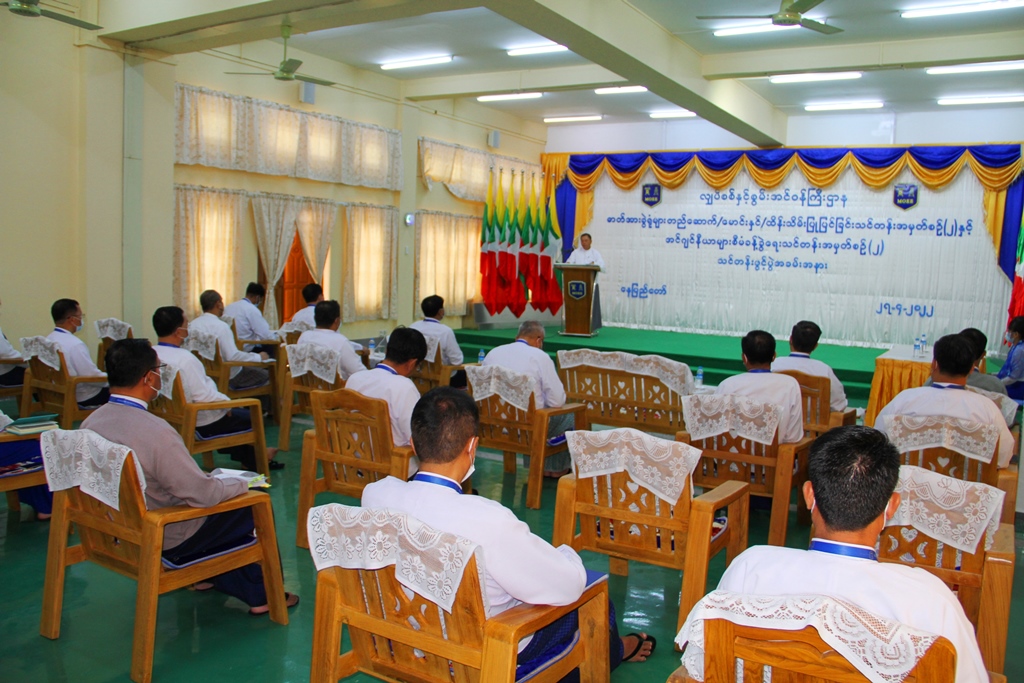 လျှပ်စစ်နှင့်စွမ်းအင်ဝန်ကြီးဌာန၊ ဓာတ်အားခွဲရုံများ တည်ဆောက်/ မောင်းနှင်/ ပြုပြင်ထိန်းသိမ်းခြင်း သင်တန်းအမှတ်စဉ် (၂)နှင့် အင်ဂျင်နီယာများစီမံခန့်ခွဲရေး သင်တန်းအမှတ်စဉ်(၂) သင်တန်းဖွင့်ပွဲ အခမ်းအနားကို ယနေ့နံနက် ၉ နာရီခွဲတွင် လျှပ်စစ်နှင့်စွမ်းအင်ဝန်ကြီးဌာန၊ နေပြည်တော် ဗဟိုသင်တန်းကျောင်း၌ Covid- 19 ကာကွယ်ရေးနည်းစနစ်များနှင့်အညီ ကျင်းပသည်။