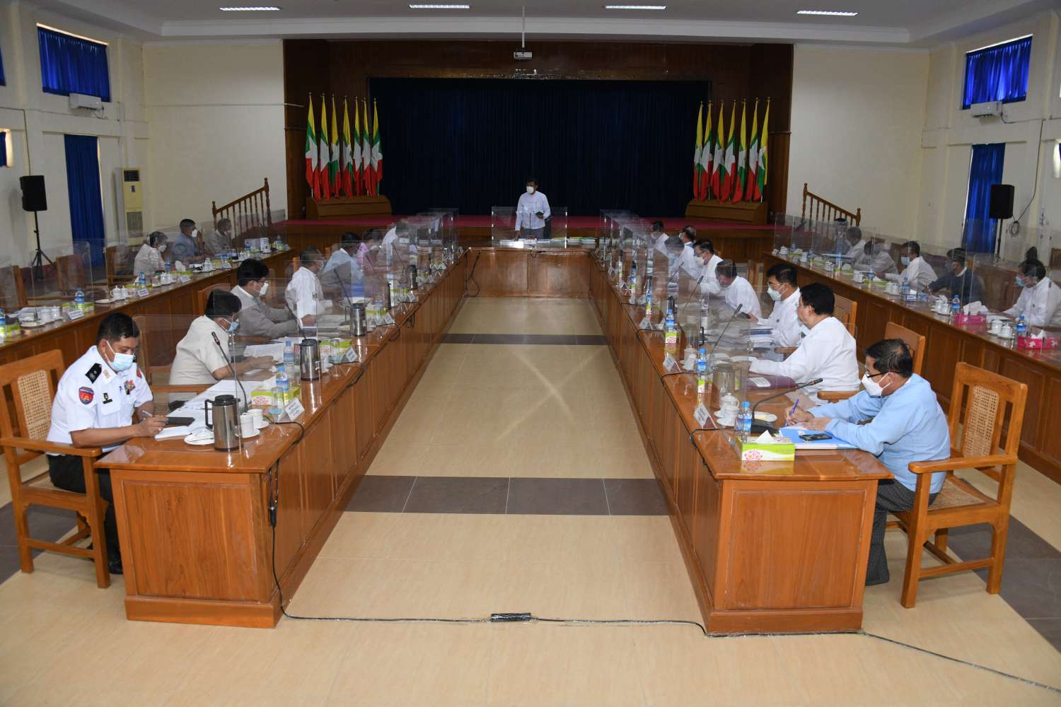 အစည်းအဝေးသို့ တိုင်းရင်းသားရေးရာ၊ ပြည်သူ့ရေးရာစီမံခန့်ခွဲမှုနှင့် ဝန်ဆောင်မှုရေးရာ ကော်မတီဥက္ကဋ္ဌ နိုင်ငံတော်စီမံအုပ်ချုပ်ရေးကောင်စီဝင် ကာကွယ်ရေးဝန်ကြီးဌာန ပြည်ထောင်စုဝန်ကြီး ဗိုလ်ချုပ်ကြီး မြထွန်းဦး၊ နိုင်ငံတော်စီမံအုပ်ချုပ်ရေးကောင်စီဝင်များဖြစ်ကြသည့် စောဒန်နီယယ်နှင့် ဒေါက်တာဗညားအောင်မိုး၊ ပြည်ထောင်စုဝန်ကြီးများဖြစ်ကြသည့် ဦးချစ်နိုင်၊ ဦးကိုကို၊ ဒေါက်တာ သက်သက်ခိုင်နှင့် ဦးစောထွန်းအောင်မြင့်၊ ဒုတိယဝန်ကြီးများ၊ အမြဲတမ်းအတွင်းဝန်များ၊ ညွှန်ကြားရေးမှူးချုပ်များနှင့် တာဝန်ရှိသူများ တက်ရောက်ကြသည်။