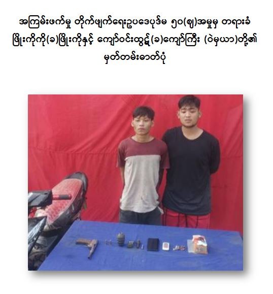 စစ်အုပ်ချုပ်ရေးအမိန့် ထုတ်ပြန်ကြေညာထားသည့် မြို့နယ်များအတွင်း စစ်ခုံရုံးဖြင့် စစ်ဆေးမည့် ပြစ်မှုဆိုင်ရာ ၂၃ မျိုးကိုလည်း ပူးတွဲထုတ်ပြန်ထားကြောင်းနှင့် အဆိုပါပြစ်မှုများကို ဖောက်ဖျက်ကျူးလွန်ပါကစစ်ခုံရုံးဖွဲ့၍ စစ်ဆေးမှုများဆောင်ရွက် ကာထိထိရောက်ရောက် မြန်မြန်ဆန်ဆန် အရေးယူဆောင်ရွက်လျက်ရှိကြောင်း သတင်းရရှိသည်။