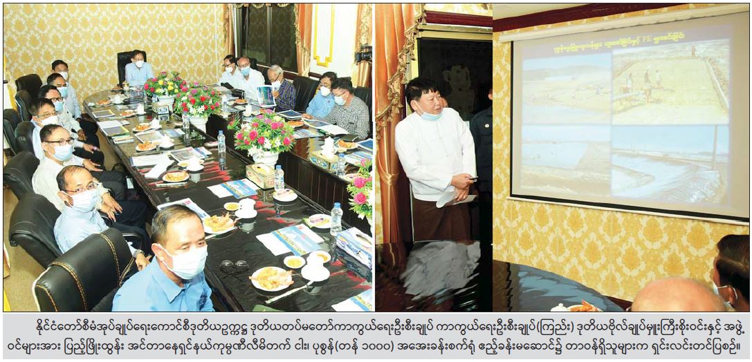ထို့နောက် နိုင်ငံတော်စီမံအုပ်ချုပ်ရေးကောင်စီဒုတိယဥက္ကဋ္ဌ ဒုတိယတပ်မတော် ကာကွယ်ရေး ဦးစီးချုပ် ကာကွယ်ရေးဦးစီး ချုပ်(ကြည်း)နှင့် အဖွဲ့ဝင်များသည် ကုမ္ပဏီမှ ဆောင်ရွက်လျက်ရှိသော ကိုယ်ထူကိုယ်ထ သင်္ဘောလွန်းကျင်း လုပ်ငန်းခွင်၊ ငါး၊ ပုစွန်များ မွေးမြူထားရှိ သည့် ကန်များကို မော်တော်ယာဉ်များ ဖြင့် လိုက်လံကြည့်ရှုကြသည်။