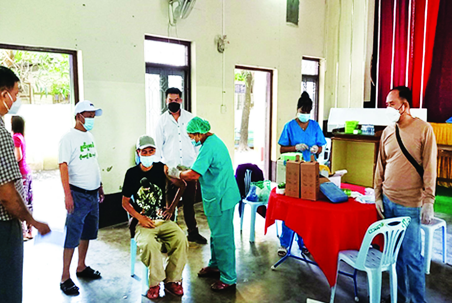 ထိုသို့ဆောင်ရွက်လျက်ရှိရာ မေ ၄ ရက်နှင့်ယနေ့တွင် ရှမ်းပြည်နယ်အရှေ့ပိုင်းကျိုင်းတုံမြို့နှင့် တာချီလိတ်မြို့နယ်တို့၌ ဒေသခံပြည်သူ ၁၃၆၀ ၊ မွန်ပြည်နယ်နှင့်ကရင်ပြည်နယ် အတွင်းရှိ မြို့နယ် ၁၃ မြို့နယ်တို့၌ ဒေသခံပြည်သူ ၅၁၄၇ ဦး၊ ရန်ကုန် တိုင်းဒေသကြီးတာမွေမြို့နယ်၌ ဒေသခံပြည်သူ ၅၆၀ ၊ ဧရာဝတီတိုင်းဒေသကြီးအတွင်းရှိ မြို့နယ်၂၆ မြို့နယ်၌ဒေသခံပြည်သူ ၁၇၃၃၂ ဦး၊ရခိုင်ပြည်နယ်နှင့် ချင်းပြည်နယ်အတွင်းရှိ မြို့နယ် ၁၃ မြို့နယ်၌ဒေသခံပြည်သူ ၁၄၉၂၆ ဦး၊မန္တလေးတိုင်းဒေသ ကြီးအတွင်းရှိ ခရိုင်ခုနစ်ခုမှ ဒေသခံပြည်သူ၂၄၇၄၇ဦးနှင့် ပဲခူးတိုင်းဒေသကြီးအတွင်းရှိ မြို့နယ်သုံးမြို့ နယ်၌ဒေသခံ ပြည်သူ ၂၅၀ တို့ကို တပ်မတော်မှ ဆေးအဖွဲ့များကပြည်သူ့ဆေးရုံများမှ ဆရာဝန်များ၊ သက်ဆိုင်ရာ ကျန်းမာရေးဝန်ထမ်းများ၊ စေတနာ့ဝန်ထမ်းများနှင့် ပူးပေါင်း၍ ကိုဗစ်-၁၉ ရောဂါ ကာကွယ်ဆေးထိုးနှံပေးသည်။