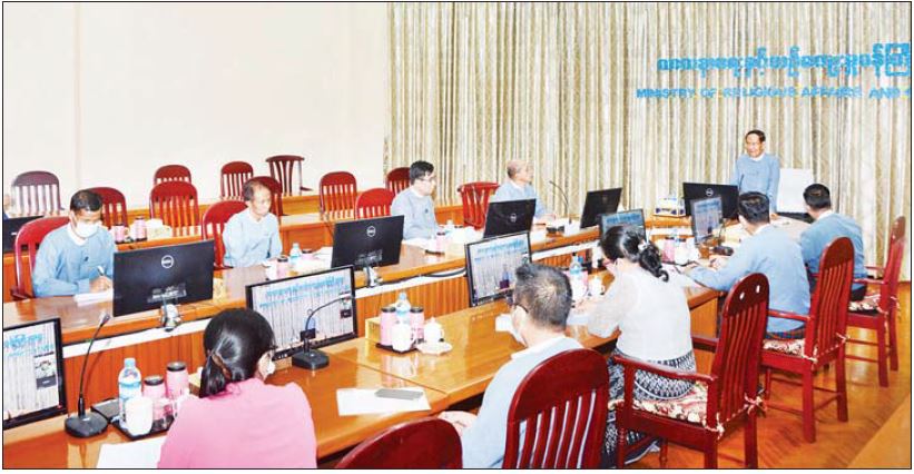 သာသနာရေးနှင့် ယဉ်ကျေးမှုဝန်ကြီးဌာန အမျိုးသား ယဉ်ကျေးမှုနှင့် အနုပညာတက္ကသိုလ်များတွင် တိုင်းရင်းသားတို့၏ ရိုးရာဂီတနှင့် အကဘာသာရပ်များကို ထည့်သွင်း သင်ကြားနိုင်ရေး သင်ရိုးညွှန်းတမ်း ရေးဆွဲရာတွင် မူဝါဒချမှတ်နိုင်ရေး ညှိနှိုင်းအစည်းအဝေးကို နေပြည်တော် ရုံးအမှတ်(၃၅) သာသနာရေးနှင့် ယဉ်ကျေးမှုဝန်ကြီးဌာန လောကနတ်ခန်းမ၌ ယနေ့နံနက်၁၀ နာရီတွင်ကျင်းပရာ သာသနာရေးနှင့် ယဉ်ကျေးမှုဝန်ကြီးဌာန ပြည်ထောင်စုဝန်ကြီး ဦးကိုကို၊ ဒုတိယဝန်ကြီး ဒေါက်တာမိုးဇော်ထွန်း၊ အနုပညာဦးစီးဌာန ညွှန်ကြားရေးမှူးချုပ် ဦးညွန့်ဝင်းနှင့် တာဝန်ရှိသူများ တက်ရောက်ကြပြီး အမျိုးသား ယဉ်ကျေးမှုနှင့် အနုပညာတက္ကသိုလ်(ရန်ကုန်)နှင့် (မန္တလေး)တို့မှ ပါမောက္ခချုပ်များ ဦးဆောင်သော ကိုယ်စားလှယ်အဖွဲ့တို့က Video Conference စနစ် ဖြင့် တက်ရောက်ကြသည်။