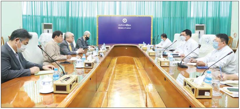 တွေ့ဆုံပွဲသို့ အလုပ်သမားဝန်ကြီးဌာန ဒုတိယဝန်ကြီး ဦးဝင်းရှိန်နှင့် ဌာနဆိုင်ရာ တာဝန်ရှိသူများ တက်ရောက်ကြပြီး Japan Myanmar Association မှ Secretary General Mr. Watanabe Yusuke ၊ Head of Indo-Pacific Economic- Development ၏ Councillor Ando Haruhiko နှင့် Japan Myanmar Association မှ Secretary to Chairman ဦးသက်စိန်တို့ တက်ရောက်ကြသည်။
