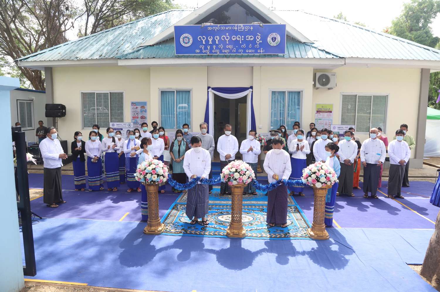 ရှေးဦးစွာ အလုပ်သမားဝန်ကြီးဌာန ပြည်ထောင်စုဝန်ကြီး ဦးမြင့်ကြိုင်နှင့် နေပြည်တော်ကောင်စီဥက္ကဋ္ဌ ဒေါက်တာမောင်မောင်နိုင်တို့က ဆေးခန်းကို ဖဲကြိုးဖြတ်ဖွင့်လှစ်ပေးပြီး လှည့်လည်ကြည့်ရှုစစ်ဆေးသည်။