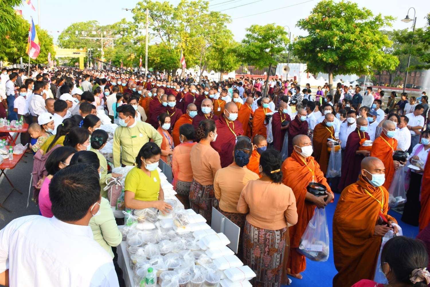 ထို့အတူ ယနေ့နံနက်ပိုင်းတွင် မန္တလေးတိုင်းဒေသကြီးအစိုးရအဖွဲ့က ဦးဆောင်၍ ဌာနဆိုင်ရာများနှင့်အတူ အလှူရှင်များက သာသနာတော်နှစ် ၂၅၆၅ နှစ် ပြည့်ပြီး ၂၅၆၆ နှစ်သို့ ရောက်ရှိမှု အထိမ်းအမှတ်နှင့် နိုင်ငံသူ၊ နိုင်ငံသားများ ဘေးအန္တရာယ်ကင်းရှင်းစေရန် ရည်ရွယ်၍ နံနက် (၆)နာရီအချိန်တွင် မန္တလေးမြို့လေးပြင်လေးရပ်ရှိ ကျုံးတစ်ဖက်စီ၌ ဆရာတော်၊ သံဃာတော် ၂၅၆၆ ပါးစီဖြင့် စုစုပေါင်း ဆရာတော်၊ သံဃာတော် (၁၀၂၆၄)ပါးတို့က အန္တရာယ်ကင်း ပရိတ်တရားတော်များကို တစ်ချိန်တည်းတစ်ပြိုင်တည်း ရွတ်ဖတ်ပူဇော်ကြပြီး မန္တလေးမြို့ လေးပြင်လေးရပ်ရှိ ဆရာတော်၊ သံဃာတော် (၁၀၂၆၄) ပါးတို့အား မန္တလေးနန်းမြို့ရိုး ကျုံးပတ်လည် လေးပြင်လေးရပ်လမ်းမကြီးများ၌ အလှူရှင်များမှ ဆွမ်း၊ ဆွမ်းဟင်း၊ လှူဖွယ်ပစ္စည်းများနှင့် နဝကမ္မဝတ္ထုငွေများကို တစ်ပြိုင်တည်းလောင်းလှူကြသည့် ပုံရိပ်များသည်လည်း နေ့ထူးနေ့မြတ် ကဆုန်လပြည့် ဗုဒ္ဓနေ့တွင် ကြည်ညိုဖွယ်ရာ မြင်ကွင်းအဖြစ် တွေ့မြင်ကြရသည်။