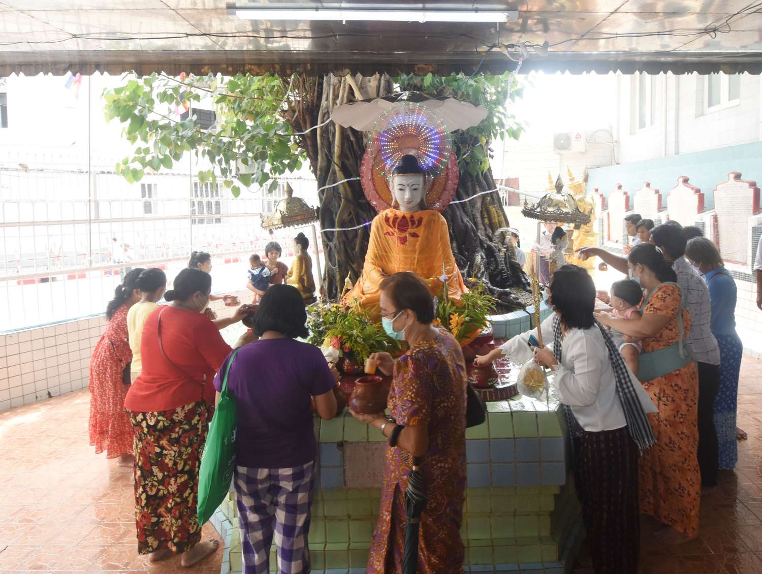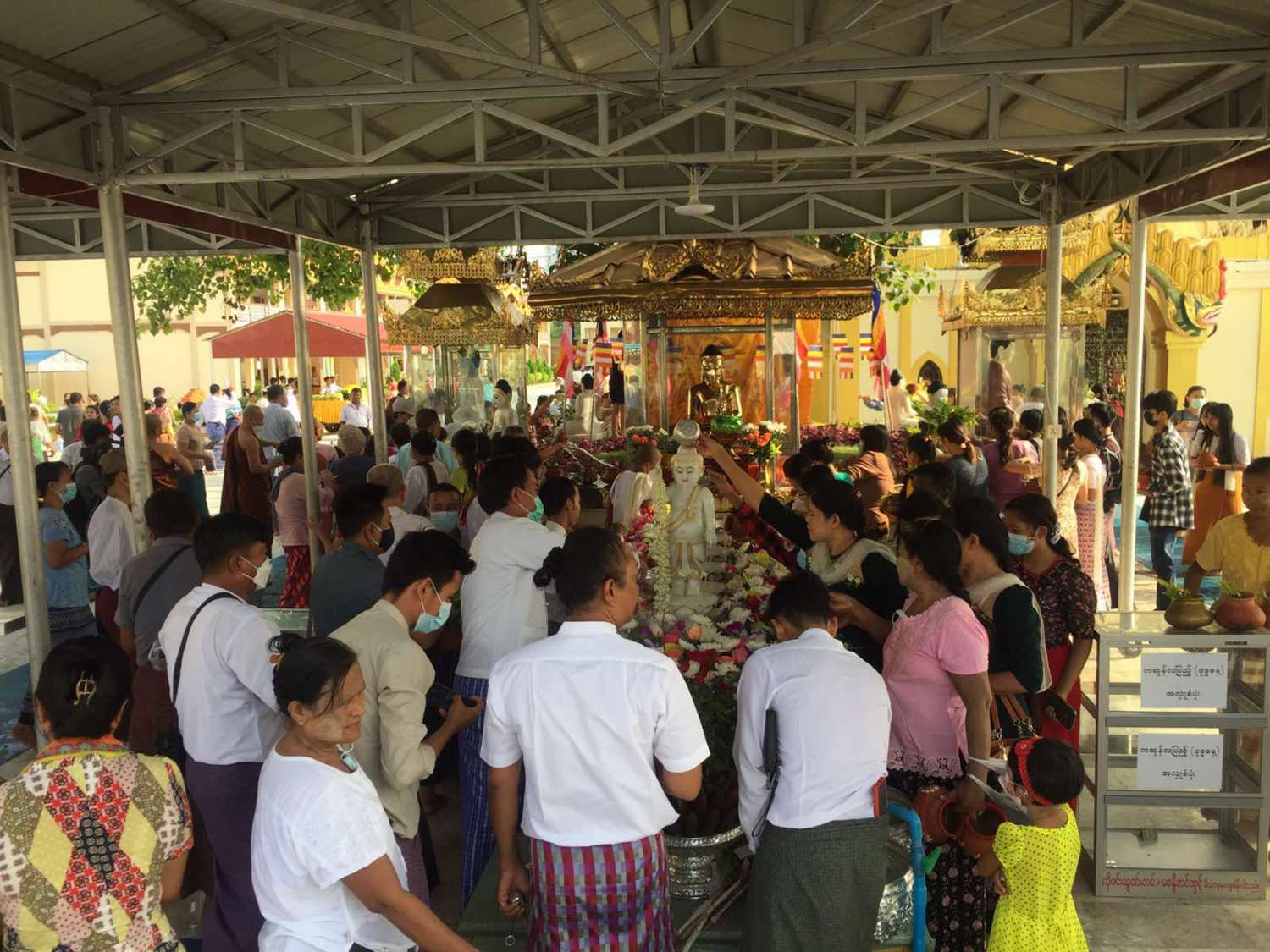 ဖွား၊ ပွင့်၊ ဟော၊ စံ ဗျာဒိတ်ခံသည့် ကဆုန်လပြည့်(ဗုဒ္ဓနေ့)သည် ဗုဒ္ဓဘာသာဝင်များ၏ နေ့ထူးနေ့မြတ်ဖြစ်သည့်အားလျော်စွာ ရန်ကုန်မြို့ရှိ ရွှေတိဂုံစေတီတော်မြတ်ကြီးအပါအဝင် ဘုရားစေတီများ၌ ဥပုသ်သီတင်းဆောက်တည်ကြသူများ၊ ကုသိုလ်ကောင်းမှု ပြုကြသူများ၊ ညောင်ရေသွန်းလောင်းကြသူများဖြင့် စည်ကားလျက်ရှိသည်ကို တွေ့မြင်ရသည်။