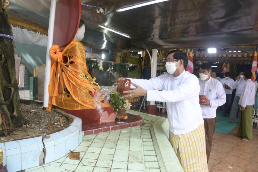 ယင်းနောက် တိုင်းဒေသကြီးဝန်ကြီးချုပ်နှင့် ဂေါပကအဖွဲ့ဝင်များသည် ရွှေတိဂုံစေတီတော် ရှေးဟောင်းဗုဒ္ဓရုပ်ပွားတော်များ တန်ဆောင်း၌ ရွှေတိဂုံစေတီတော်ဘဏ္ဍာတော်ထိန်း ဩဝါဒါစရိယ ဆရာတော်ကြီးများအား အရုဏ်ဆွမ်း ဆက်ကပ်လှူဒါန်းကြသည်၊၊