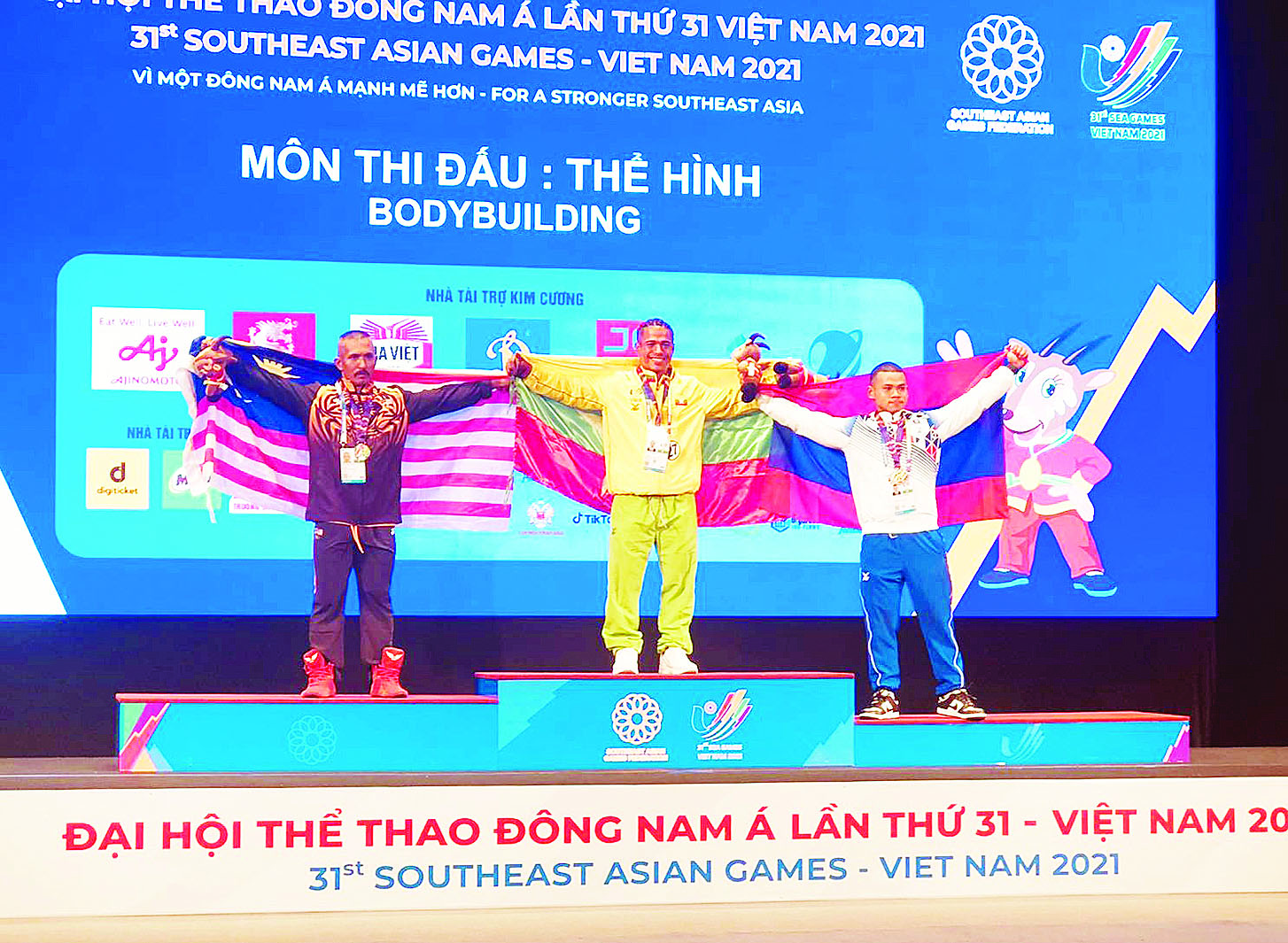 Cau Giay Gumnasium ၌ ကျင်းပသော ကာယဗလနှင့် ကာယအလှပြိုင်ပွဲတွင် မြန်မာကာယဗလ အားကစားသမားများသည် (၇၀) ကီလိုတန်းတွင် ပထမ ရဲထွန်းနောင်(မြန်မာ)၊ ဒုတိယ မလေးရှား၊ တတိယ လာအိုက လည်းကောင်း၊ (၈၀) ကီလိုတန်းတွင် ပထမထိုင်း၊ ဒုတိယ မင်းဇော်ဦး(မြန်မာ)၊ တတိယ မလေးရှားကလည်းကောင်း၊ (၈၅) ကီလိုတန်းတွင် ပထမထိုင်း၊ ဒုတိယခင်မောင်ကျော် (မြန်မာ)၊ တတိယ မလေးရှားကလည်းကောင်း၊ (၅၅)ကီလိုတန်းတွင် ပထမဗီယက်နမ်၊ ဒုတိယ မ‌လေးရှား၊ တတိယ‌ ကျော်မင်းသန်း (မြန်မာ)နိုင်ငံတို့ ရရှိသည်။‌