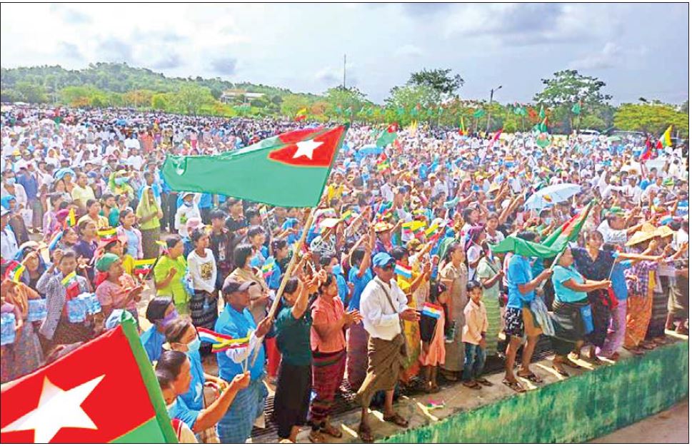 နိုင်ငံတော်စီမံအုပ်ချုပ်ရေးကောင်စီဥက္ကဋ္ဌ နိုင်ငံတော်ဝန်ကြီးချုပ် ဗိုလ်ချုပ်မှူးကြီး မင်းအောင်လှိုင်၏ တိုင်းရင်းသားလက်နက်ကိုင် အဖွဲ့အစည်းများအား ငြိမ်းချမ်းရေး ဆွေးနွေးပွဲအတွက် ဖိတ်ခေါ်မှုကို ပြည်သူများကကြိုဆို ထောက်ခံသည့်အနေဖြင့် ငြိမ်းချမ်းရေး ကြိုးပမ်းဆောင်ရွက်မှု လုပ်ငန်းများကို ကြိုဆိုထောက်ခံခြင်းနှင့် ပြည်ပစွက်ဖက် နှောင့်ယှက်မှုများအား ဆန့်ကျင်ရှုတ်ချပွဲကို ယနေ့နံနက်ပိုင်းတွင် နေပြည်တော် ကောင်စီနယ်မြေပုဗ္ဗသီရိမြို့နယ် ဥပ္ပါတသန္တိစေတီတော်တပေါင်းကွင်း၌ ကျင်းပသည်။