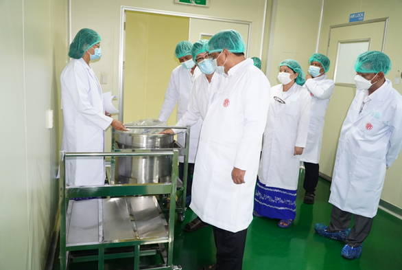 ထို့နောက် ပြည်ထောင်စုဝန်ကြီးသည် တာဝန်ရှိသူများနှင့်အတူ Myancopharm ကိုဗစ်-၁၉ ရောဂါကာကွယ်ဆေးများ ထုတ်လုပ်နေသည့် နည်းစဉ်အဆင့်ဆင့်တို့ကို ကြည့်ရှုစစ်ဆေးသည်။