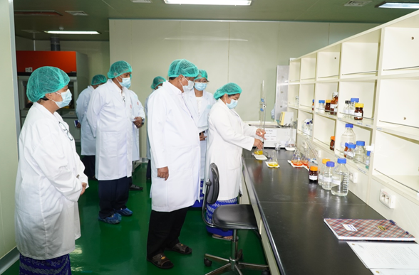 ပြည်ထောင်စုဝန်ကြီးအား စက်ရုံမှူးနှင့် တာဝန်ရှိသူများက Myancopharm အမှတ်တံဆိပ် ကိုဗစ်-၁၉ ရောဂါကာကွယ်ဆေးများ ပုလင်းသွင်း ဖြည့်တင်းထုတ်လုပ်နေမှု၊ ထုတ်လုပ်ပြီး ကိုဗစ်-၁၉ ရောဂါကာကွယ်ဆေးများအား ကျန်းမာရေးဝန်ကြီးဌာနသို့ ဖြန့်ဖြူးရောင်းချပေးနေမှု၊ Myancopharm ကာကွယ်ဆေးများ တိုးမြှင့်ထုတ်လုပ်နိုင်ရေး ဆက်လက်ဆောင်ရွက်မည့် အစီအမံများ၊ ကာကွယ်ဆေး သုတေသနဆိုင်ရာ ကိစ္စရပ်များကို ဆေးသုတေသနဦးစီးဌာနနှင့် ပူးပေါင်းဆောင်ရွက်နေမှု အခြေအနေနှင့် ဆက်လက်ဆောင်ရွက်သွားမည့် အစီအစဉ်၊ အရည်အသွေး စစ်ဆေးရေးနှင့် အရည်အသွေး အာမခံဌာနတို့၏ လုပ်ငန်းဆောင်ရွက်နေမှုနှင့် စက်ရုံသမိုင်းပြခန်း တည်ဆောက်နိုင်ရေးအတွက် ဆောင်ရွက်နေမှုတို့ကို ရှင်းလင်းတင်ပြကြသည်။