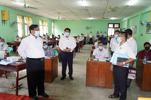 မွန်းလွဲပိုင်းတွင် ပြည်ထောင်စုဝန်ကြီးသည် ဗဟန်းမြို့နယ်၊ ကမ္ဘာအေးဘုရားလမ်းရှိ ရန်ကုန်တိုင်းဒေသကြီး စက်မှုကြီးကြပ်ရေးနှင့်စစ်ဆေးရေးဦးစီးဌာနသို့ ရောက်ရှိပြီး ဘွိုင်လာကိုင်တွယ် ထိန်းသိမ်းသူများသင်တန်း ဖွင့်လှစ်နေမှုအခြေအနေကို ကြည့်ရှုစစ်ဆေးပြီး သင်တန်းသားများနှင့် ရင်းရင်းနှီးနှီး တွေ့ဆုံနှုတ်ဆက်သည်။
