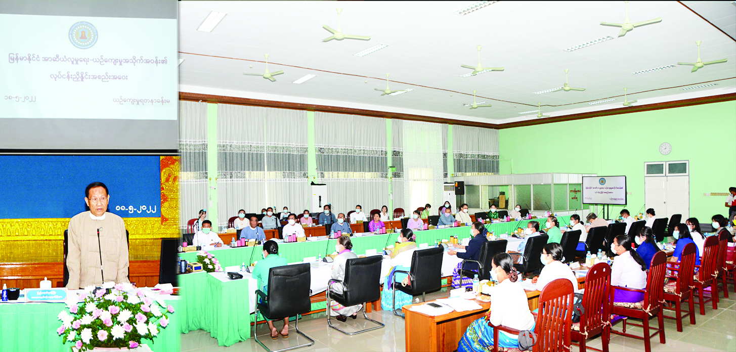 အာဆီယံလူမှုရေး-ယဉ်ကျေးမှုအသိုက်အဝန်း အခြေပြမြေပုံ ၂၀၂၅ အကောင်အထည်ဖော်မှုဆိုင်ရာ ကိစ္စများနှင့်စပ်လျဉ်းပြီး ရှေ့ဆက်လုပ်ဆောင်ရမည့် လုပ်ငန်းများနှင့် ပတ်သက်၍ အာဆီယံလူမှုရေး-ယဉ်ကျေးမှု အသိုက်အဝန်းအခြေပြမြေပုံ ၂၀၂၅ ကို အကောင်အထည်ဖော်ရာတွင် မြန်မာနိုင်ငံ၏ နှစ်လယ်အစီရင်ခံစာ-၂၀၂၀ (Mid Term Review- MTR)ကို ယနေ့ တက်ရောက်လာကြသည့် လုပ်ငန်းအစုအဖွဲ့အသီးသီး၏ ပံ့ပိုးကူညီမှုများဖြင့် ရေးသားတင်သွင်းနိုင်ခဲ့ကြောင်း၊ ၂၀၂၅ ခုနှစ်သို့ မျှော်မှန်းထားသည့် ရည်မှန်းချက်များအတိုင်း ဆောင်ရွက်ခဲ့ရာ လမ်းတစ်ဝက်သို့ ကျော်လွန်ရောက်ရှိနေပြီး ၂၀၂၅ နှစ်ကုန်တွင် အာဆီယံအသိုက်အဝန်းအနေဖြင့် ပြီးမြောက်အောင်မြင်မှုတို့ကို တိုင်းတာဖော်ပြရမည်ဖြစ်ကြောင်း၊ သို့ဖြစ်ပါ၍ ယခုအချိန်ကတည်းက အချက်အလက်များပြည့်စုံစွာရှိစေရေး ပုံမှန်စုစည်း မှတ်တမ်းတင်သွားရန် လိုအပ်ကြောင်း၊ ယခင် MTR ရေးသားစဉ်က ရရှိခဲ့သည့် အတွေ့အကြုံများနှင့် စိန်ခေါ်မှုများကို ကောင်းစွာအသုံးချပြီး ၂၀၂၅ အကုန်တွင် Data အချက်အလက်ပြည့်စုံစွာဖြင့် ရေးသားပြုစုနိုင်လိမ့်မည်ဟု ယုံကြည်ကြောင်း ပြောကြားသည်။