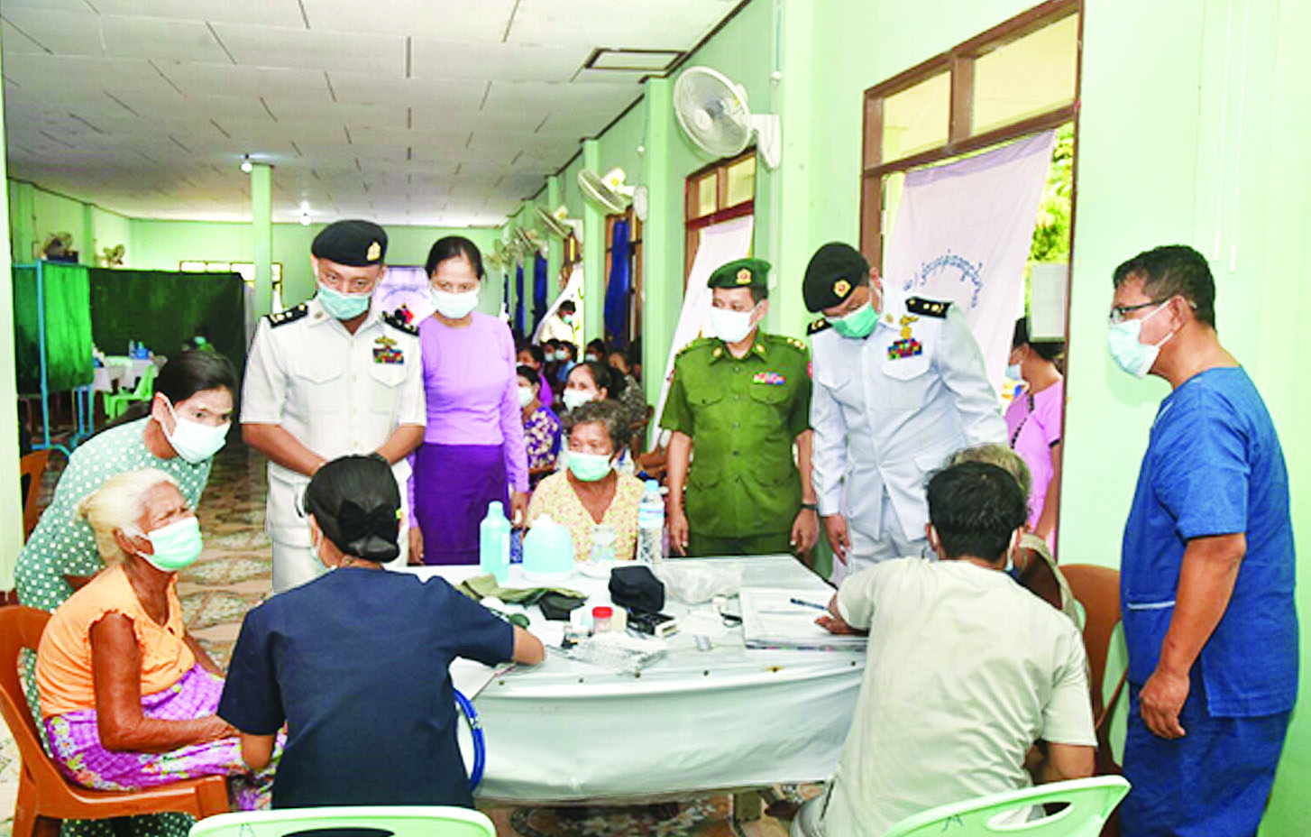 တနင်္သာရီတိုင်းဒေသကြီး ကော့သောင်းမြို့နယ်အတွင်းရှိ ဒေသခံပြည်သူများအား ကျန်းမာရေးစောင့်ရှောက်မှုလုပ်ငန်းများ ဆောင်ရွက်ပေးရန်ရောက်ရှိနေသည့် နယ်လှည့်အထူးကုဆေး အဖွဲ့များပါဝင်သည့် တပ်မတော်ပင်လယ်သွားဆေးရုံ ရေယာဉ် (သံလွင်)သည် ယနေ့တွင် ကော့သောင်းမြို့နယ် ဇာဒက်ကြီးကျွန်းရှိ ဘိုးဘွားရိပ်သာ၌ ဒေသခံဆလုံလူမျိုးများနှင့် တပ်မတော်သား မိသားစုဝင် စုစုပေါင်း ၃၁၆ ဦးအား ကျန်းမာရေးစောင့်ရှောက်မှုလုပ်ငန်းများ ဆောင်ရွက်ပေးသည်။