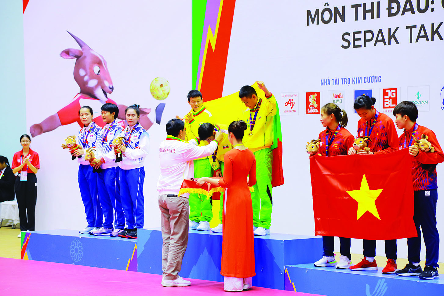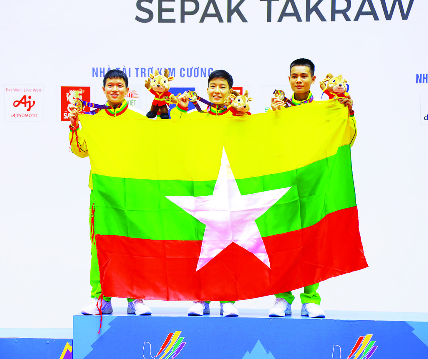 ဗီယက်နမ်နိုင်ငံ၌ အိမ်ရှင်အဖြစ် လက်ခံကျင်းပလျက်ရှိသည့် (၃၁) ကြိမ်မြောက် အရှေ့တောင်အာရှအားကစားပြိုင်ပွဲများကို မြို့အသီးသီးရှိ အားကစားကွင်း/ အားကစားရုံများ၌ ကျင်းပလျက်ရှိရာ ယနေ့မွန်းလွဲပိုင်းတွင် ဗီယက်နမ်နိုင်ငံ ဟနွိုင်းမြို့ရှိ Hoang Mai အားကစားရုံ၌ ပိုက်ကျော်ခြင်း အားကစားနည်း အမျိုးသား/ အမျိုးသမီး ဗိုလ်လုပွဲ ပွဲစဉ်များ၌ အမျိုးသမီး (နှစ်ယောက်တွဲ) အသင်းလိုက် (Regu) ပြိုင်ပွဲတွင် အိမ်ရှင် ဗီယက်နမ်အသင်းကို (၂-၁)ဖြင့် အနိုင်ရရှိခဲ့ပြီး မြန်မာနိုင်ငံအတွက် သတ္တမမြောက် ရွှေတံဆိပ်ဆုကို ထိုက်ထိုက်တန်တန် ဆွတ်ခူးရယူပေးနိုင်ခဲ့ပြီး၊ အမျိုးသား (နှစ်ယောက်တွဲ) အသင်းလိုက်ပြိုင်ပွဲတွင် ကြေးတံဆိပ်ဆုကိုလည်းကောင်း၊ ပြေးခုန်ပစ်အားကစားနည်းမှ ၂၀ ကီလိုမီတာ အမျိုးသမီး (လမ်းလျှောက်)ပြိုင်ပွဲ ဖိုင်နယ်ပွဲစဉ်၌ မြန်မာ၊ မလေးရှား၊ ထိုင်းနှင့် ဗီယက်နမ်နိုင်ငံတို့ ယှဉ်ပြိုင်ကြရာတွင် မဇင်မေထက်က ငွေတံဆိပ်ဆုကိုလည်းကောင်း ထပ်မံဆွတ်ခူးရရှိခဲ့ကြသည်။