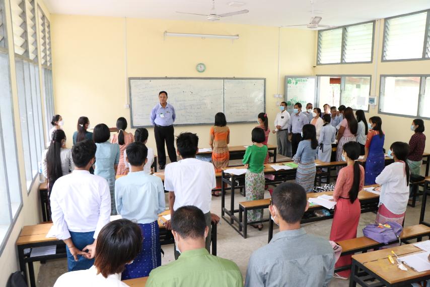 ရှေးဦးစွာ ပြည်ထောင်စုဝန်ကြီးနှင့်အဖွဲ့သည့် လှည်းကူးမြို့နယ်ရှိ ဖောင်ကြီးသမဝါယမ ကောလိပ်သို့ ရောက်ရှိကြည့်ရှုပြီး ၂၀၂၀ ပြည့်နှစ် တက္ကသိုလ်ဝင်တန်းအောင်မြင်ခဲ့ပြီး ပထမနှစ် သင်တန်း တက်ရောက်နေကြသည့် ကျောင်းသား ကျောင်းသူများ ပညာသင်ကြားနေမှုကို လည်းကောင်း၊ တက္ကသိုလ်မှ သင်တန်းနည်းပြ ဆရာ/ ဆရာမများ Capacity Building and Training of Trainer on Pedagogy သင်တန်းများ ဖွင့်လှစ်သင်ကြားနေမှုကို လည်းကောင်း ကြည့်ရှုစစ်ဆေးသည်။