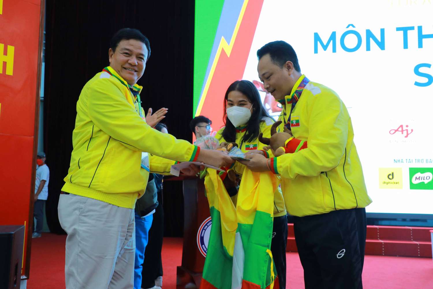ယနေ့ညနေပိုင်းတွင် ဗီယက်နမ်နိုင်ငံ ဟနွိုင်းမြို့ရှိ Soc Son အားကစားရုံ၌ ဗိုဗီနမ်အားကစားနည်းမှ Male Single Weapon practice four element staff form (တုတ်ရှည်အပြ)ပွဲစဉ်၌ မောင်တင်ထူးဇော်က ငွေတံဆိပ်ဆုကိုလည်းကောင်း၊ Male Couple Weapon practice pair machete form (နှစ်ယောက်တွဲအပြ) ပွဲစဉ်၌ မောင်ရာဇာထွန်းနှင့် မောင်တင်ထူးဇော်တို့က ကြေးတံဆိပ်ဆုကိုလည်းကောင်း၊ (-55)ကီလိုတန်း(အတိုက်)ပွဲစဉ်၌ မောင်ကျော်ကိုကိုက ကြေးတံဆိပ်ဆုကိုလည်းကောင်း၊ သေနတ်ပစ်အားကစားနည်းမှ (10)မီတာ Air Pistol Mixed Team ပွဲစဉ်၌ မောင်ရဲထွန်းနောင်နှင့် မချစ်စိုးနွယ်တို့က ငွေတံဆိပ်ဆုကိုလည်းကောင်း၊ ပိုက်ကျော်ခြင်းအားကစားနည်းမှ အမျိုးသား (လေးယောက်တွဲ)ပွဲစဉ်၌ အမျိုးသားအသင်းက အကြေးတံဆိပ်ဆုကိုလည်းကောင်း၊ အမျိုးသမီး (လေးယောက်တွဲ)ပွဲစဉ်၌ အမျိူးသမီးအသင်းက ကြေးတံဆိပ်ဆုကိုလည်းကောင်း၊ ဂျူဒိုအားကစားနည်းမှ (-45) ကီလိုတန်းပွဲစဉ်၌ မစဲလ်ဝှီး ကကြေးတံဆိပ်ဆုကိုလည်းကောင်း၊ ကနူး/ကယက်လှေလှော် အားကစားနည်းမှ အမျိုးသမီး မီတာ(၂၀၀) ကနူး တစ်ဦးချင်းပွဲစဉ်၌ မသက်ဖြိုးနိုင်က ကြေးတံဆိပ်ဆုကိုလည်းကောင်း၊ အမျိုးသမီး မီတာ(၂၀၀) ကနူး လေးယောက်လှော်ပွဲစဉ်၌ မသက်ဖြိုးနိုင်၊ မစုဝေဖြိုး၊ မမြင့်မြင့်စိုးနှင့် မမိုးမမတို့က ကြေးတံဆိပ်ဆုကိုလည်းကောင်း၊ ဘိလိယက်နှင့်စနူကာအားကစားနည်းမှ Men Snooker Single ပွဲစဉ်၌ မောင်အောင်ဖြိုးက ကြေးတံဆိပ်ဆုကိုလည်းကောင်း ရရှိခဲ့ကြသည်။