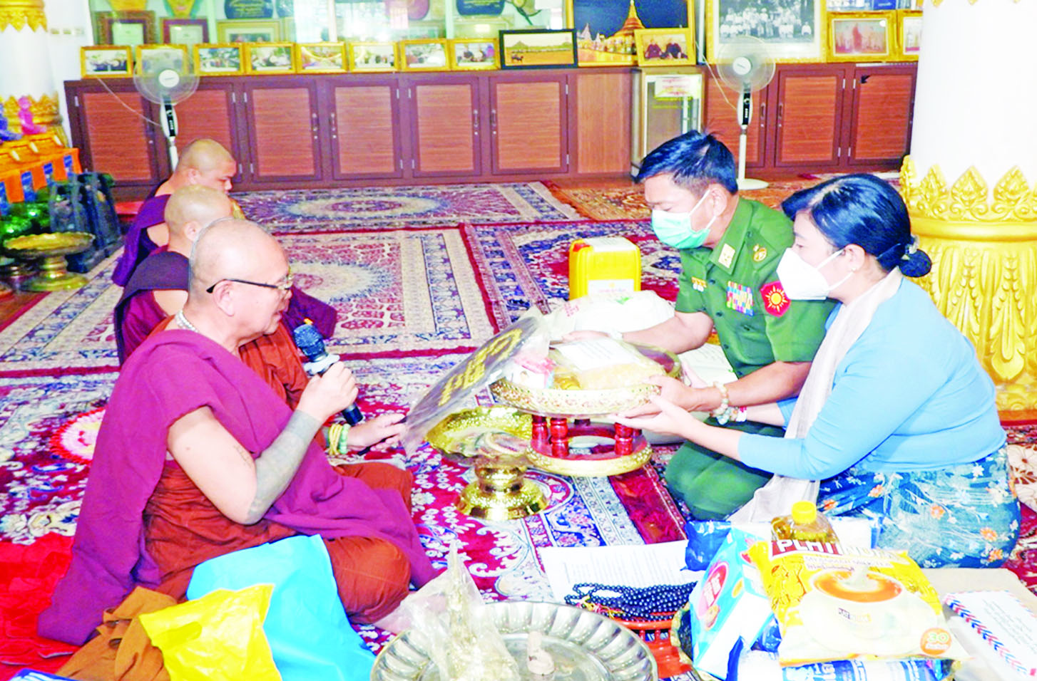 တပ်မတော်(ကြည်း၊ ရေ၊ လေ)မိသားစုများနှင့် စေတနာရှင်ပြည်သူများက ဆွမ်းဆန်တော်၊ ဆီ၊ ဆား၊ ပဲ အမယ်လေးမျိုး၊ နေ့ဆွမ်းများနှင့် နဝကမ္မအလှူငွေများ ဆက်ကပ်လှူဒါန်း