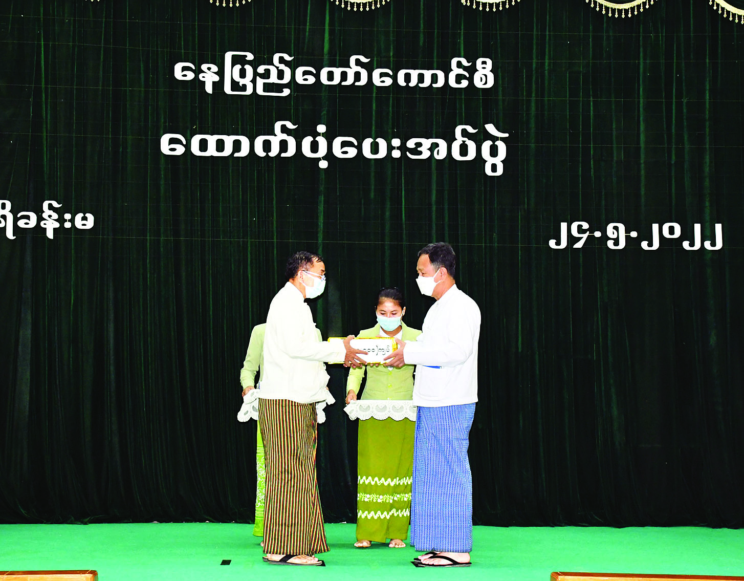 ထို့နောက် နေပြည်တော်ကောင်စီဥက္ကဋ္ဌက နေပြည်တော် စစ်မှုထမ်းဟောင်းအဖွဲ့များအား ထောက်ပံ့ငွေကျပ်သိန်း ၄၀ နှင့် ကိုဗစ်-၁၉ ရောဂါ ကာကွယ်ရေး ကျန်းမာရေးသုံးပစ္စည်းများကို လည်းကောင်း၊ နေပြည်တော်တိုင်း စစ်ဌာနချုပ်တိုင်းမှူးအား ကိုဗစ်-၁၉ ရောဂါ ကာကွယ်ရေး ကျန်းမာရေးသုံးပစ္စည်းများကိုလည်းကောင်း ထောက်ပံ့ပေးအပ်ရာ နေပြည်တော် စစ်မှုထမ်းဟောင်း ကြီးကြပ်ရေးအဖွဲ့ဥက္ကဋ္ဌ ဗိုလ်မှူးကြီးယုလွင်(ငြိမ်း)က ကျေးဇူးတင်စကား ပြန်လည်ပြောကြားသည်။