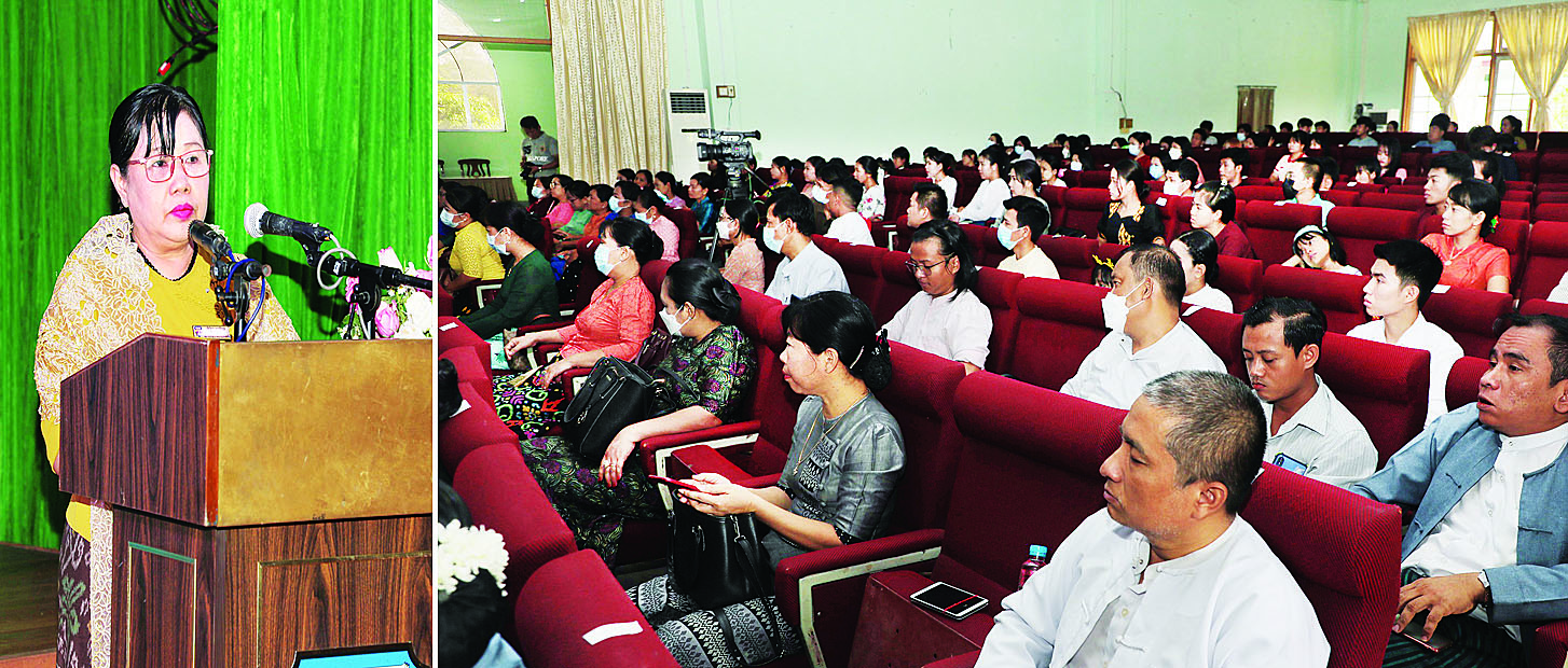 ရှေးဦးစွာအမျိုးသားယဉ်ကျေးမှုနှင့်အနုပညာတက္ကသိုလ် (ရန်ကုန်) ပါမောက္ခချုပ်ဒေါက်တာ ကေသီထွေးက မောင်မယ်သစ်လွင်များကို ကြိုဆိုနှုတ်ခွန်းဆက်စကားပြေကြားသည်။