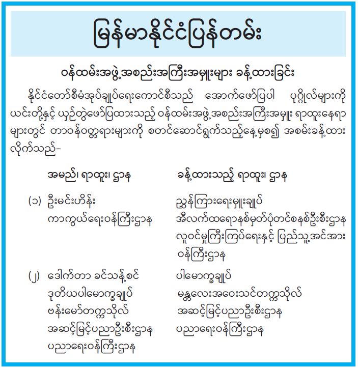 ဝန်ကြီးဌာန ကြေညာချက်များ