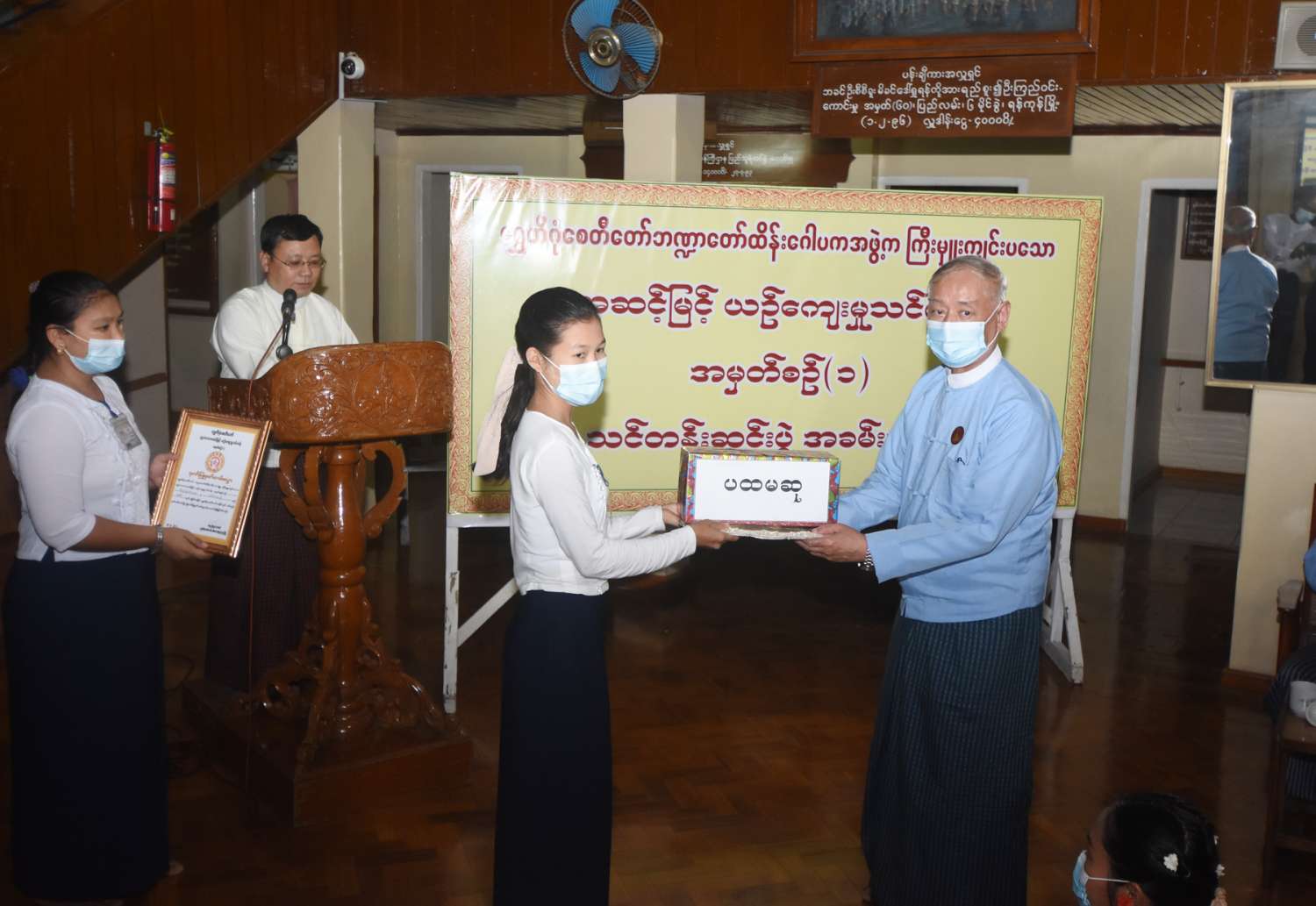 ထို့နောက် ရွှေတိဂုံစေတီတော်ဘဏ္ဍာတော်ထိန်းဂေါပကအဖွဲ့ဝင်များက သင်တန်းနည်းပြဆရာကြီးကိုဂါရဝပြုလက်ဆောင်နှင့်ဆုရသင်တန်းသားများကို ဆုလက်ဆောင်များပေးအပ်ချီးမြှင့်ကြသည်။ ယင်းနောက် သင်တန်းသားတစ်ဦးက ကျေးဇူးတင်စကားပြောကြားပြီး ဗုဒ္ဓသာသနံစိရံတိဋ္ဌတု သုံးကြိမ်ရွတ်ဆိုဆုတောင်း၍ အခမ်းအနားကိုရုပ်သိမ်းလိုက်သည်။