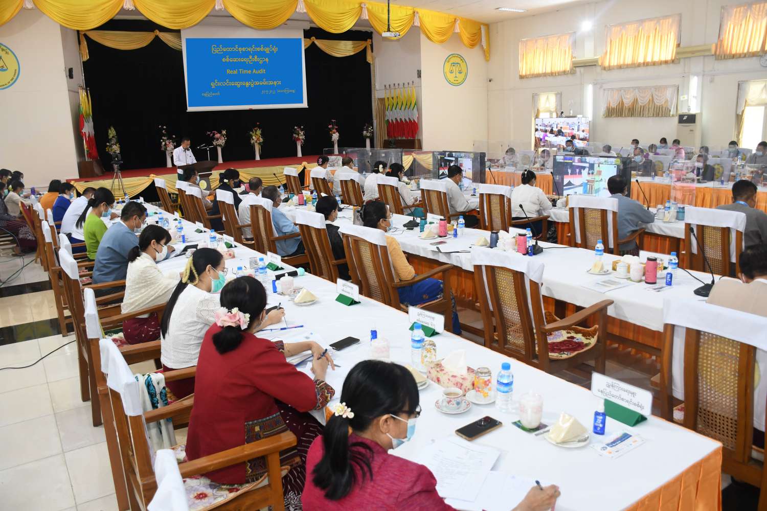 ၂၀၂၂-၂၀၂၃ ဘဏ္ဍာရေးနှစ်မှစ၍ကျင့်သုံးမည့် အချိန်နှင့်တစ်ပြေးညီစစ်ဆေးခြင်း (Real Time Audit) ဆိုင်ရာရှင်းလင်းဆွေးနွေးပွဲကို ယနေ့နံနက် ၉ နာရီခွဲက ပြည်ထောင်စုစာရင်းစစ်ချုပ်ရုံး(နေပြည်တော်) စုပေါင်းခန်းမတွင် ကိုဗစ်-၁၉ ရောဂါဆိုင်ရာထုတ်ပြန်ထားသော စည်းကမ်းသတ်မှတ်ချက်များနှင့်အညီ ကျင်းပသည်။