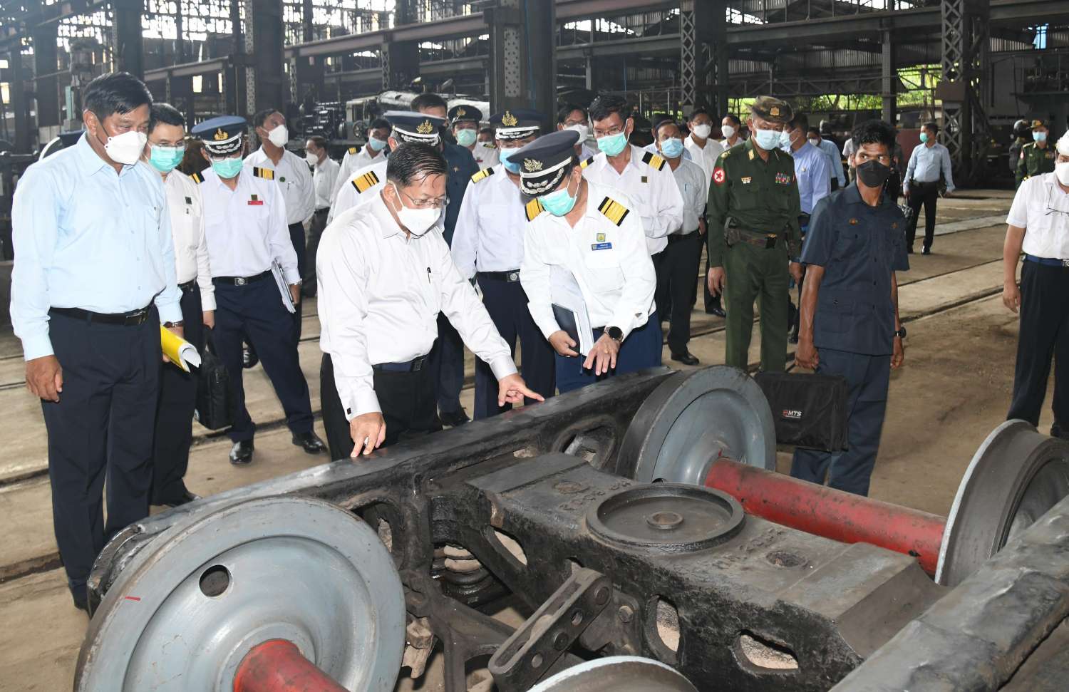 နိုင်ငံတော်စီမံအုပ်ချုပ်ရေးကောင်စီဥက္ကဋ္ဌ၊ နိုင်ငံတော်ဝန်ကြီးချုပ်ဗိုလ်ချုပ်မှူးကြီးမင်းအောင်လှိုင် မြန်မာ့မီးရထားစက်ခေါင်းစက်ရုံ(အင်းစိန်) လုပ်ငန်းဆောင်ရွက်နေမှုအခြေအနေအား သွားရောက်ကြည့်ရှုစစ်ဆေး