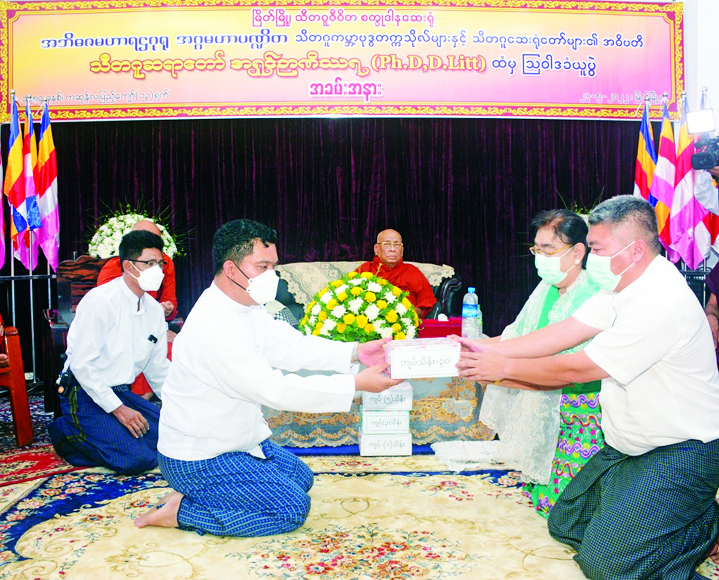 သီတဂူကမ္ဘာ့ဗုဒ္ဓတက္ကသိုလ်များ၏ အဓိပတိရွှေကျင်နိကာယဥပ ဥက္ကဋ္ဌအဘိဓဇ မဟာရဋ္ဌဂုရု အဘိဓဇအဂ္ဂမဟာ သဒ္ဓမ္မဇောတိက မဟာဓမ္မကထိက၊ဗဟုဇနဟိတဓရဒေါက်တာ ဘဒ္ဒန္တဉာဏိဿရထံမှ ဩဝါဒခံယူခြင်းနှင့် အလှူငွေပေးအပ်ပွဲကို ယနေ့မွန်းလွဲပိုင်းတွင် တနင်္သာရီတိုင်းဒေသကြီး မြိတ်မြို့ရှိ သီတဂူဇီဝိတစက္ခုဒါနဆေးရုံခန်းမ၌ပြုလုပ်ရာ သီတဂူဆရာတော်ဒေါက်တာဘဒ္ဒန္တဉာဏိဿရ အမှူးပြုသော သံဃာတော်များ ကြွရောက်တော်မူ ကြပြီးကမ်းရိုးတန်းဒေသ တိုင်းစစ်ဌာနချုပ်တိုင်းမှူး ဗိုလ်ချုပ်စောသန်းလှိုင်နှင့် ဌာနဆိုင်ရာ တာဝန်ရှိသူများ၊ အလှူရှင်များတက်ရောက်ကြသည်။